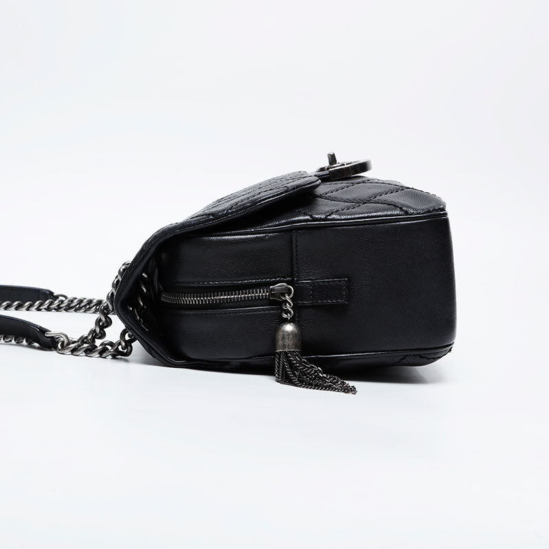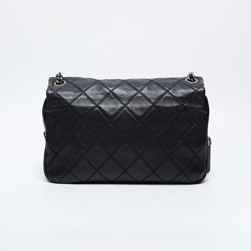 シャネル CHANEL ショルダーバッグ 18番台 2013-2014 ワイルドステッチ マトラッセ ガンメタリック シルバー金具 ブラック