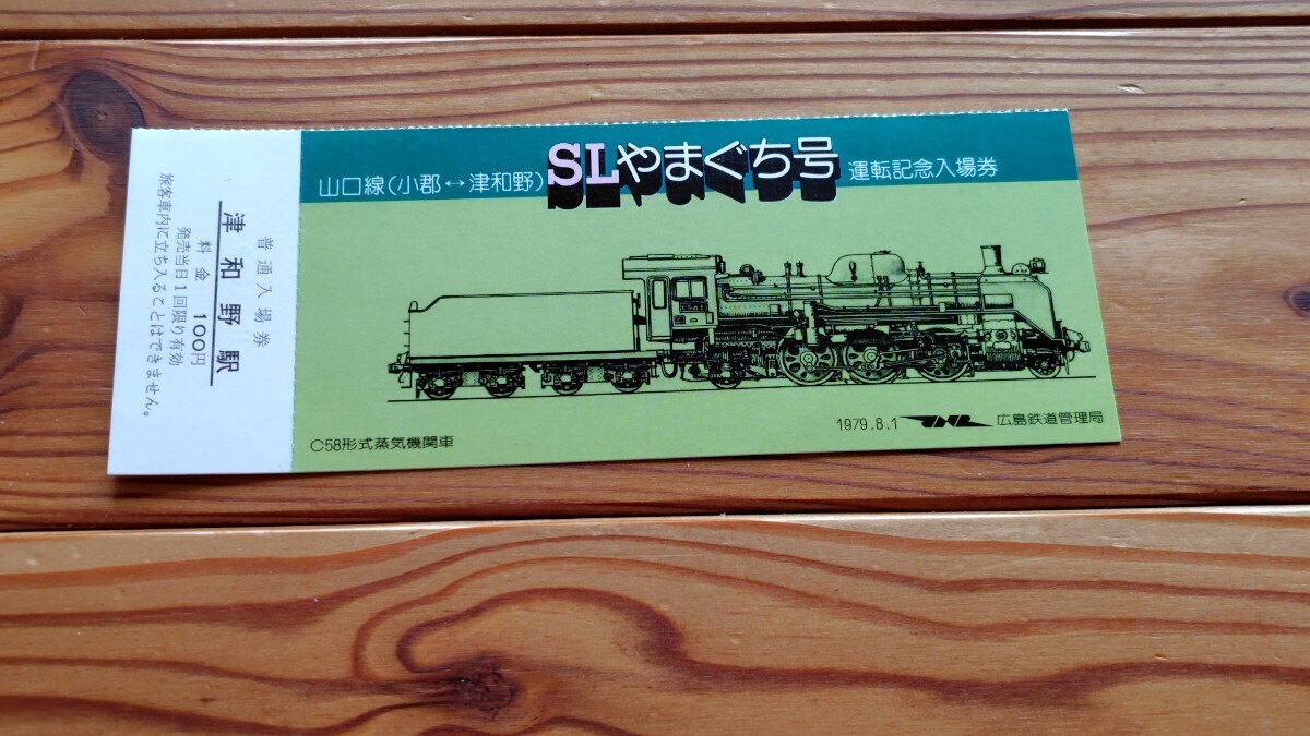津和野駅の入場券、SLやまぐち号の半券がついています。