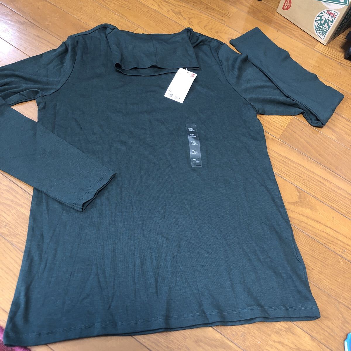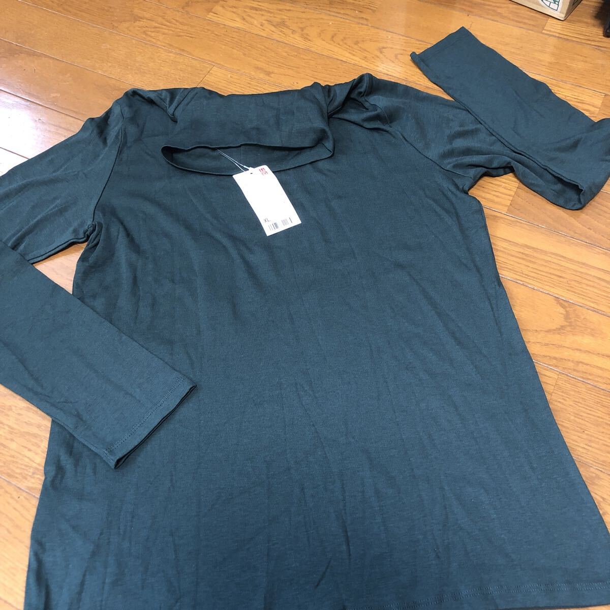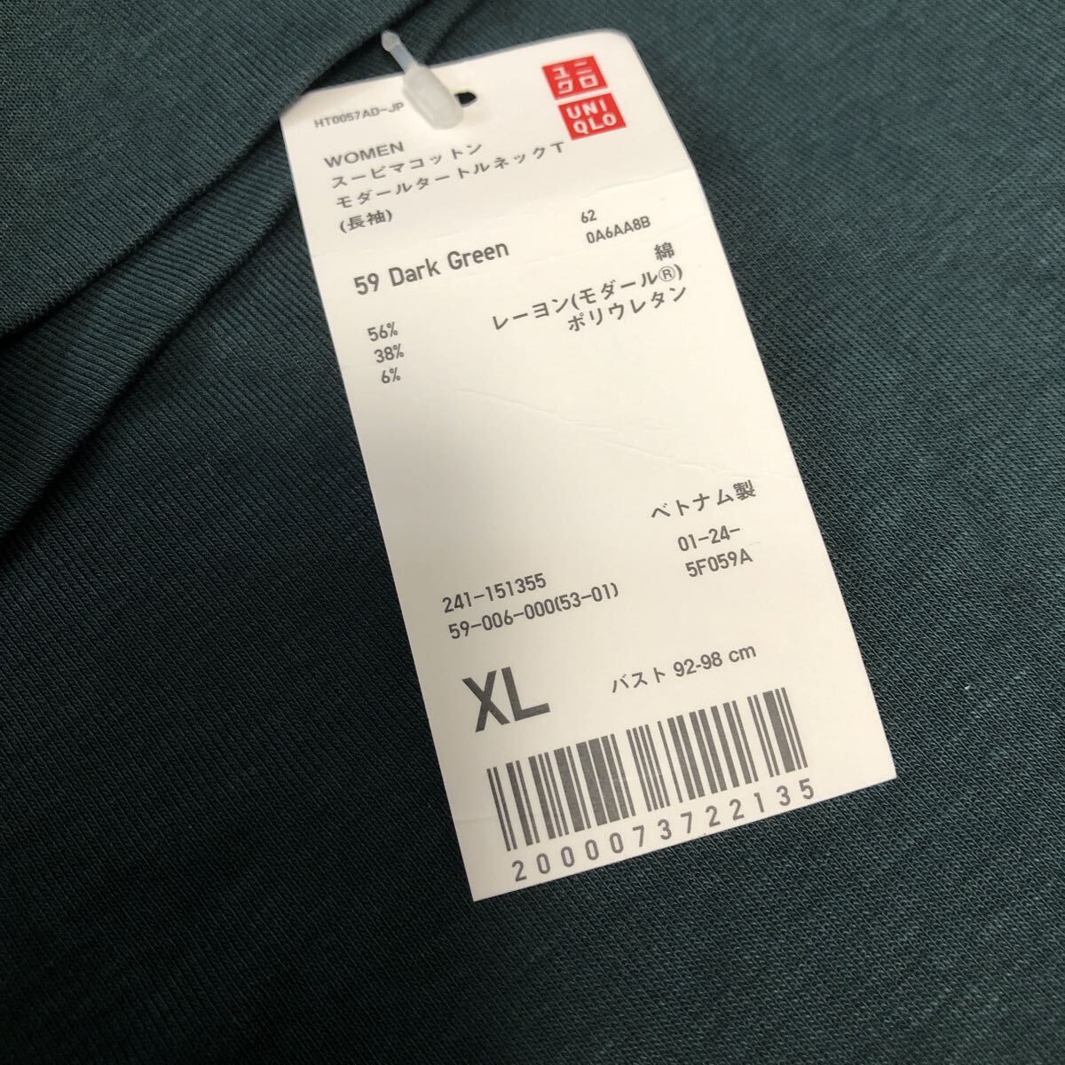 新品ユニクロUNIQLO ハイネックT長袖 XL 濃い緑 綿56% レーヨン38%ポリウレタン6% 未使用 送料230円