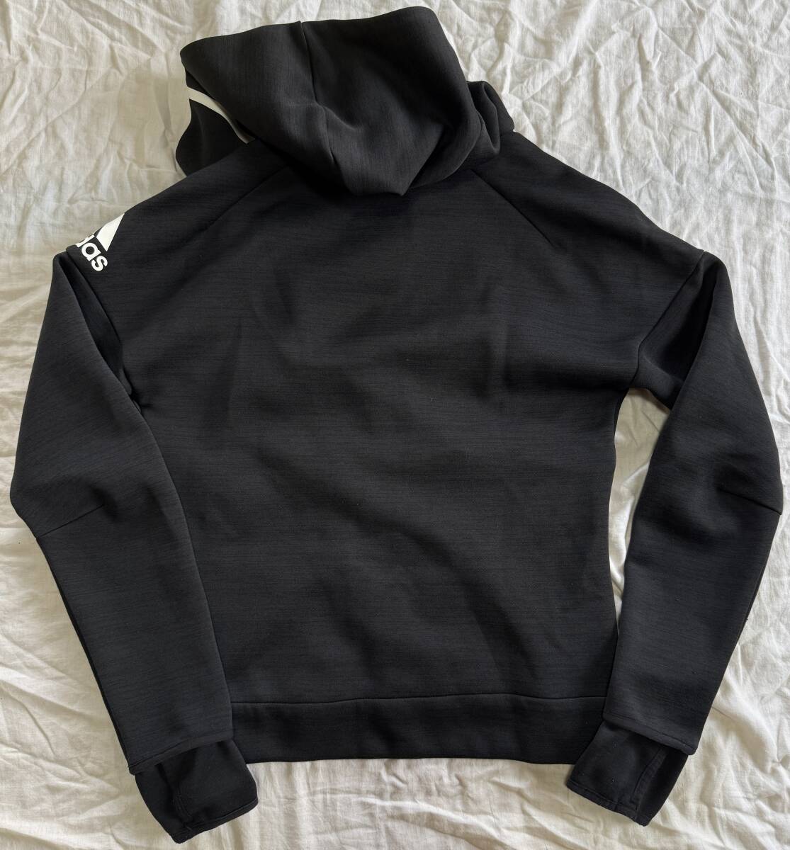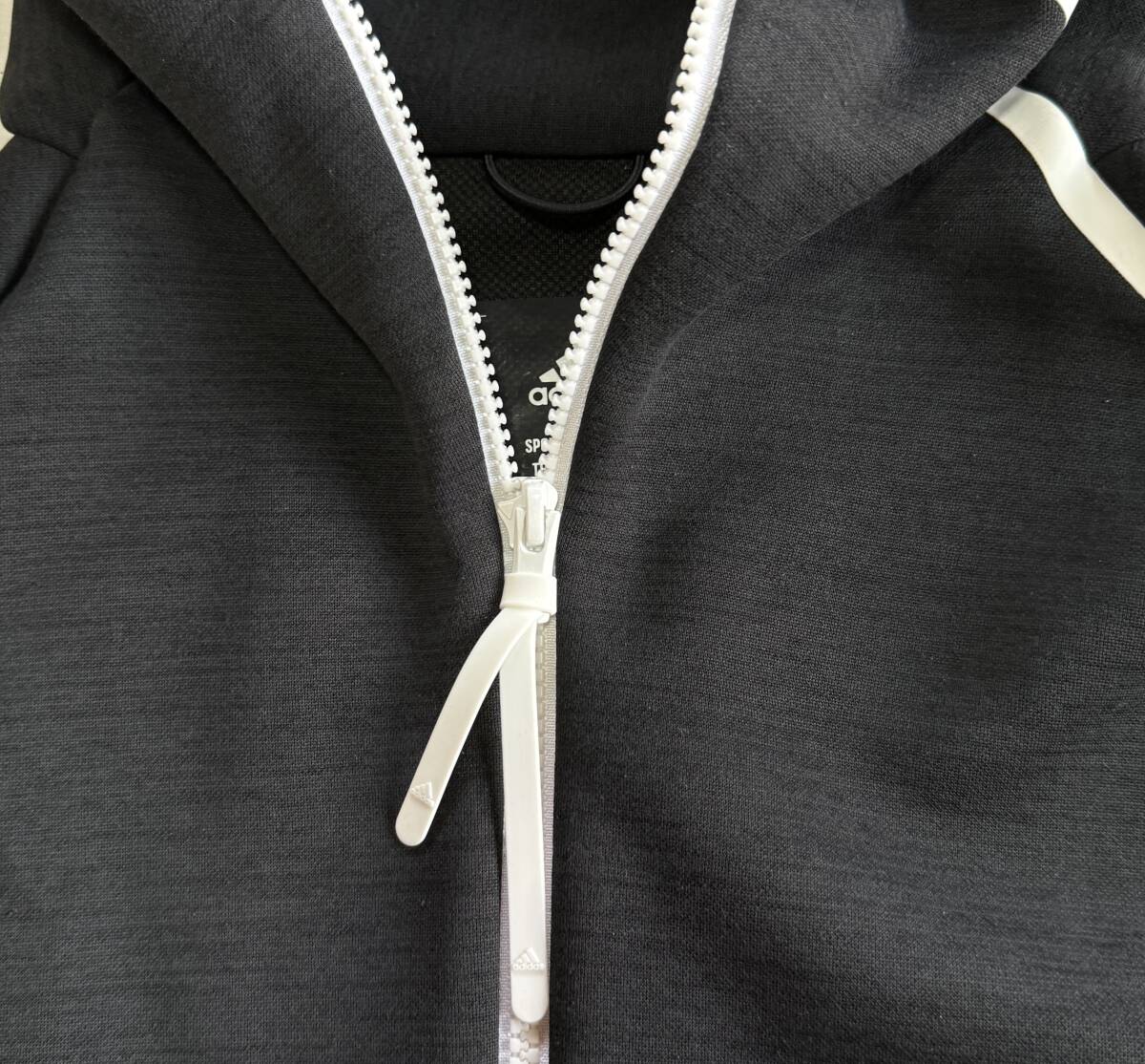 アディダス パーカー 黒 ボーダー 白 L シンプル 柄物 プリント