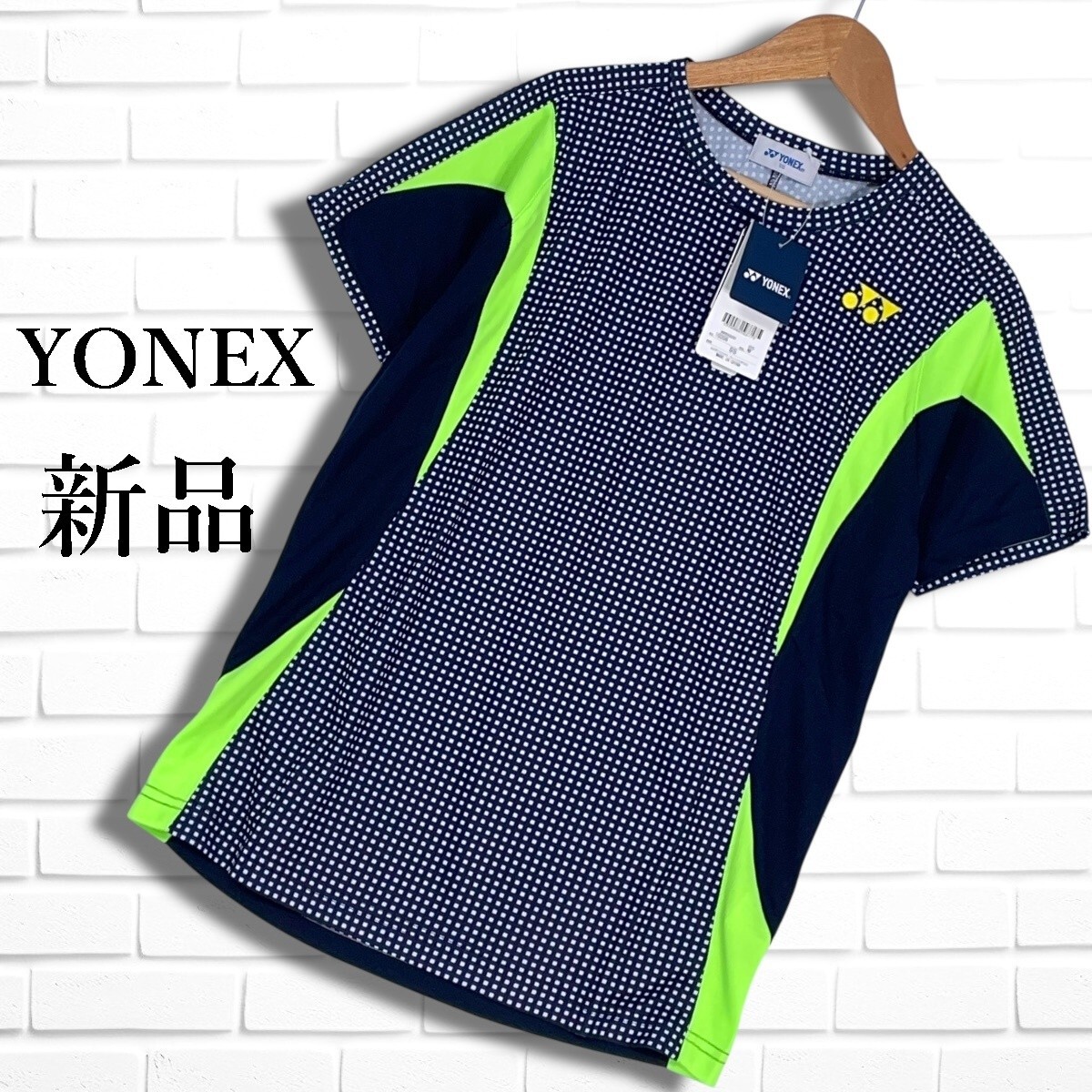 ◆新品◆ YONEX ヨネックス ストレッチ ロゴ 刺繍 バドミントン 半袖 ゲームシャツ ユニフォーム ネイビー メンズ SS ◆タグ付き 送料無料◆ 5525H◎