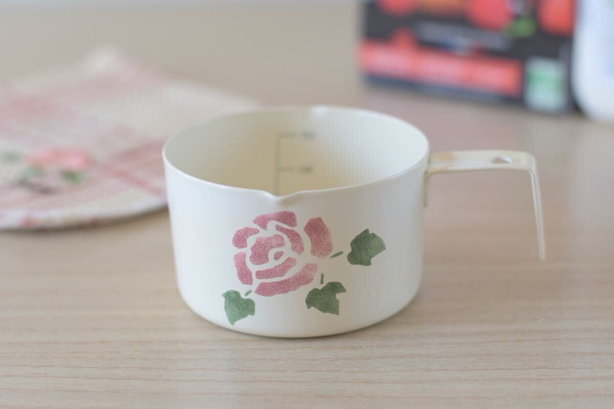 可愛くて実用的なメジャーカップです。使わないときにはフックで壁にかけてもステキです