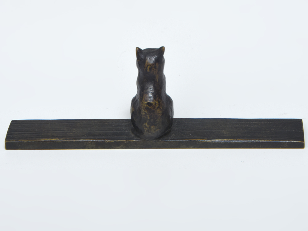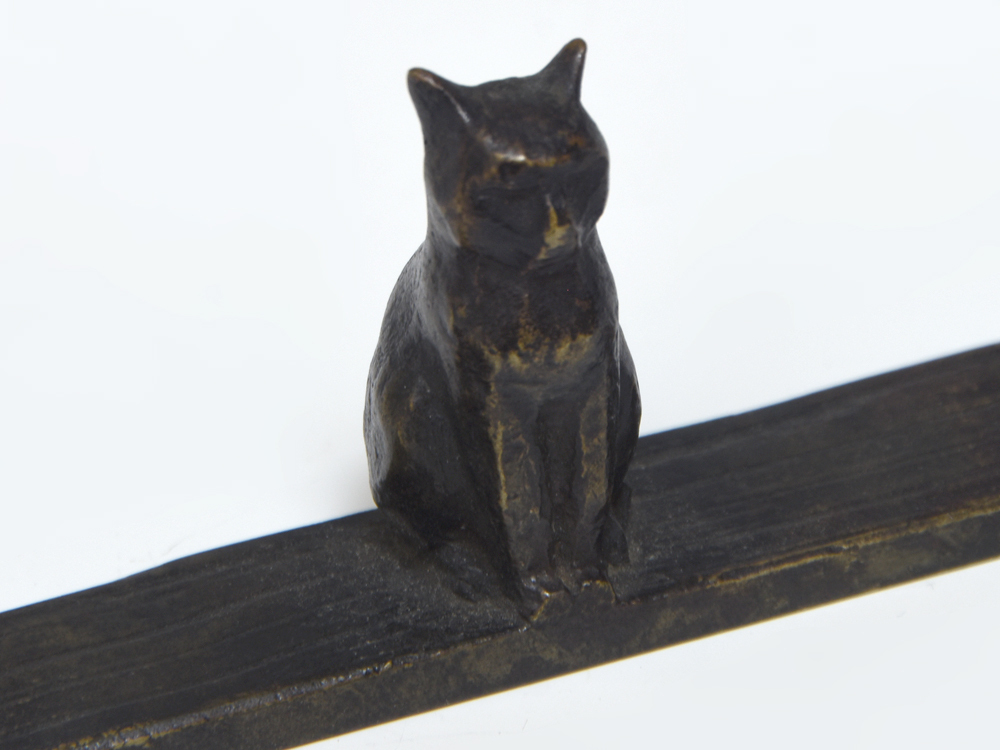 豊(作)猫文鎮 ブロンズ 金属工芸 書道具 文房道具 在銘 |