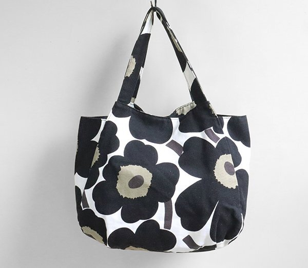 marimekko ◆ Unikko キャンバス トートバッグ 黒/白 (A4サイズ収納可) 花柄 肩掛け ショルダー ウニッコ マリメッコ ◆ES17