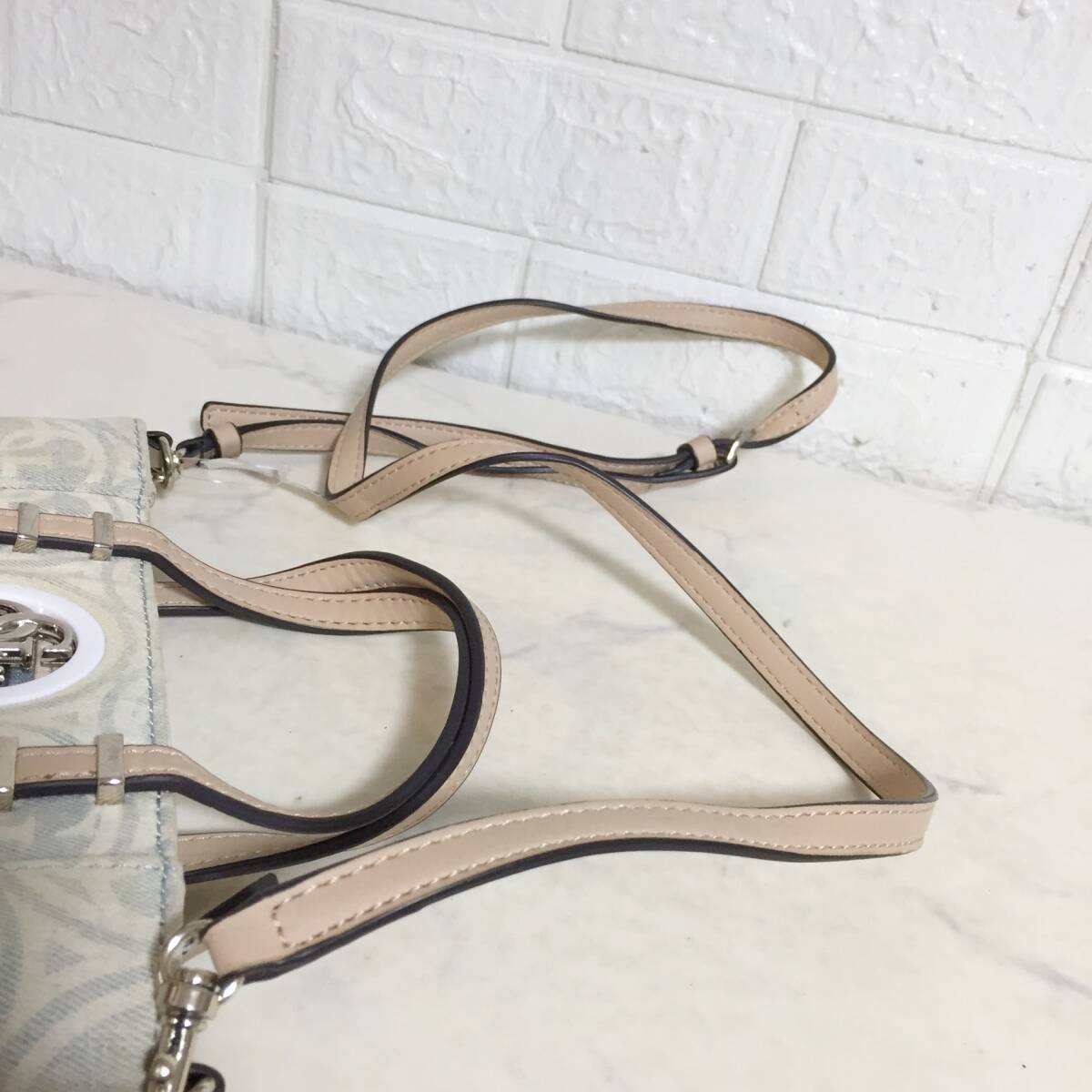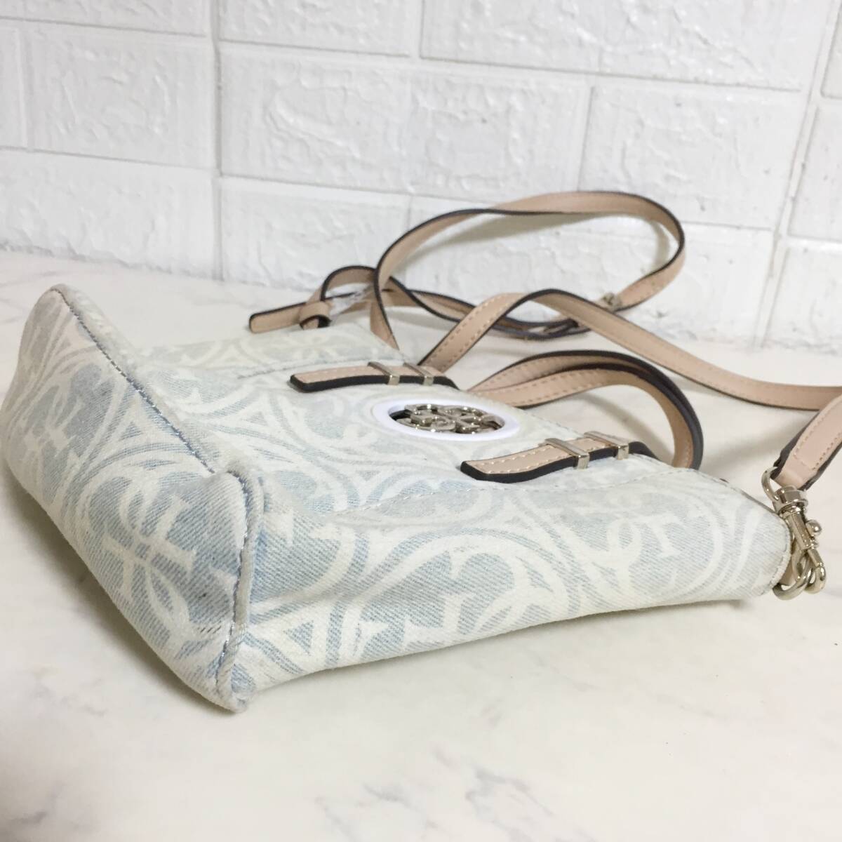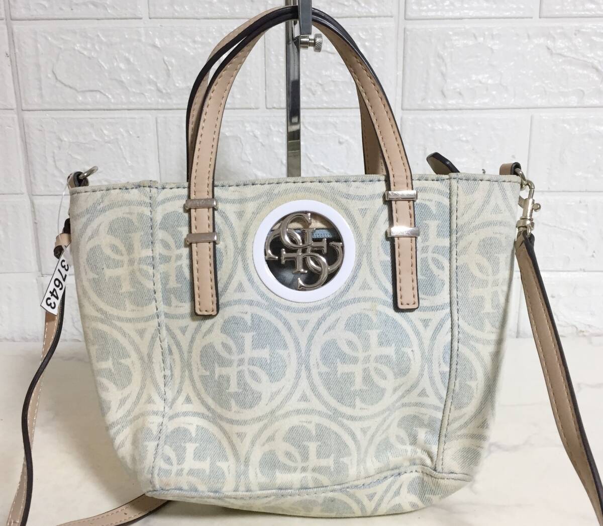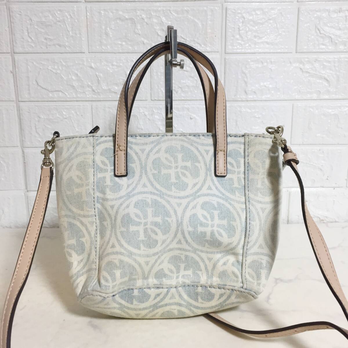no37643 GUESS ゲス レザー キャンバス 総柄 2way ショルダー トート バッグ