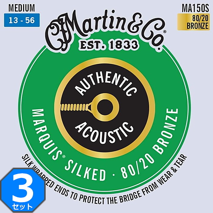 3セット Martin MA150S Marquis Silked Medium 013-056 80/20 Bronze マーチン アコギ弦