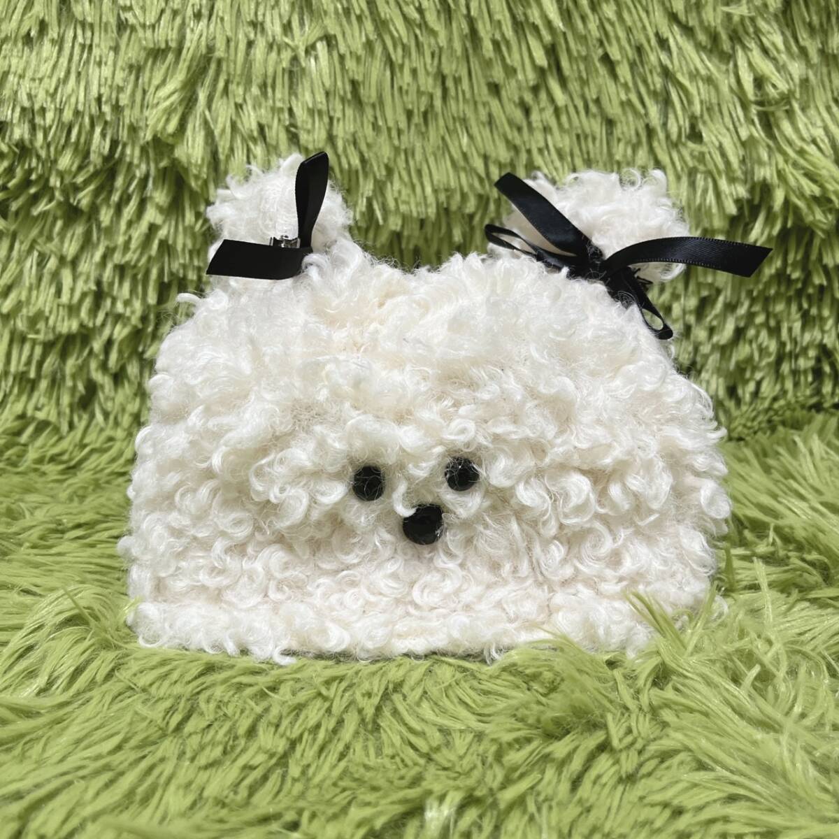 ティッシュケース コンパクト 犬 ぬいぐるみ 動物 かわいい おしゃれ 韓国 収納 ティッシュカバー リボン プードル 白 NE0263 M1