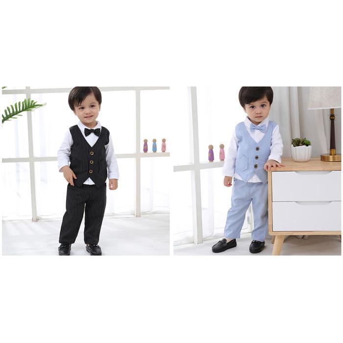 ・ベスト一体型のシャツ風トップス、ロングパンツ、蝶ネクタイの3点セット。大人顔負けのスタイリングが完成☆