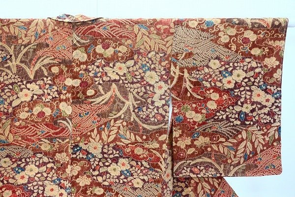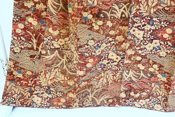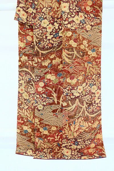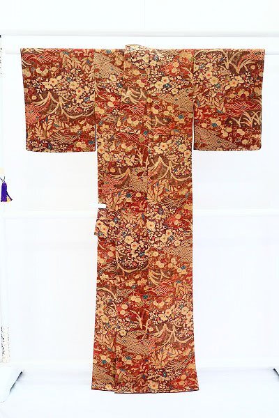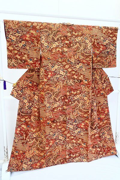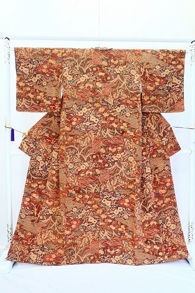 茶系の絹地に辻が花があしらわれた小紋です。 落ち着いた色合いと風合いが魅力的な一枚です。 トールサイズですので背の高い方にもおすすめです。 未使用品です。 担当:前田 |