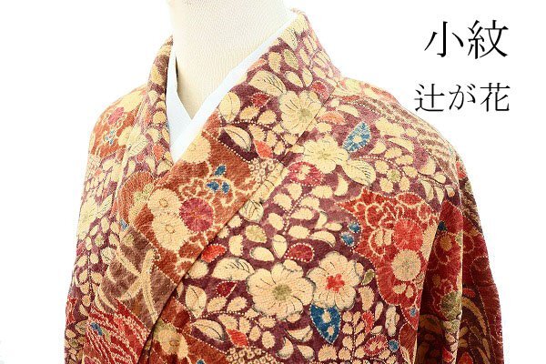 【着物フィ】未使用品 小紋 辻が花 茶系 縮緬地 身丈165.0cm 裄丈67cm トールサイズ 袷 仕立て上がり 正絹 お洒落 着物フィ m-8174 |