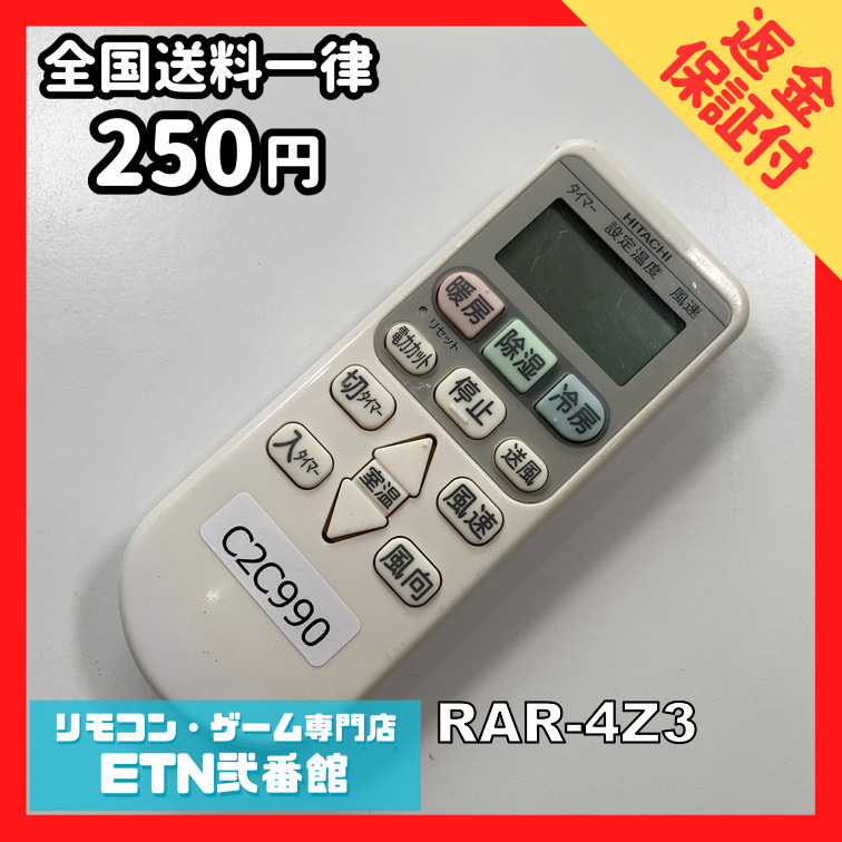 C2C990 【送料250円】エアコン リモコン / 日立 ヒタチ HITACHI RAR-4Z3 冷房 暖房 動作確認済み★即発送★