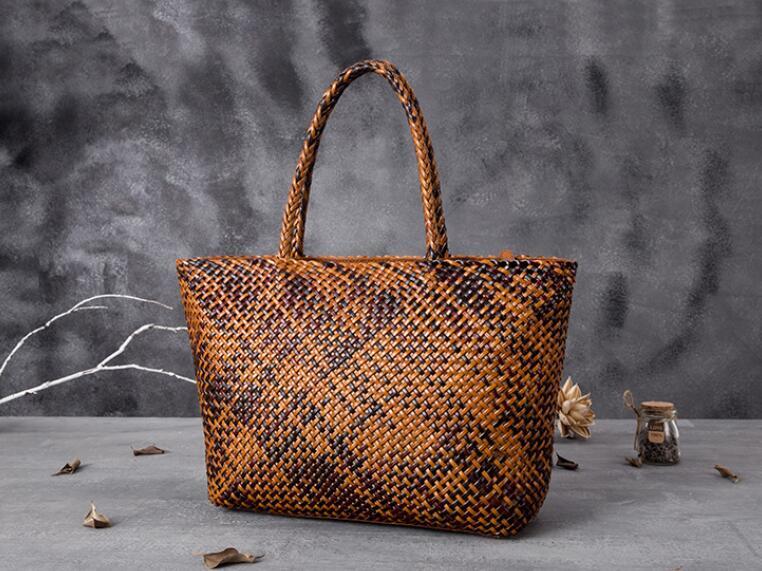 新入荷大人気高級 牛革 かごバッグ 籠 /手編み 内布付き レディースバッグ トート 多機能 ハンドバッグ 新品 コーヒー