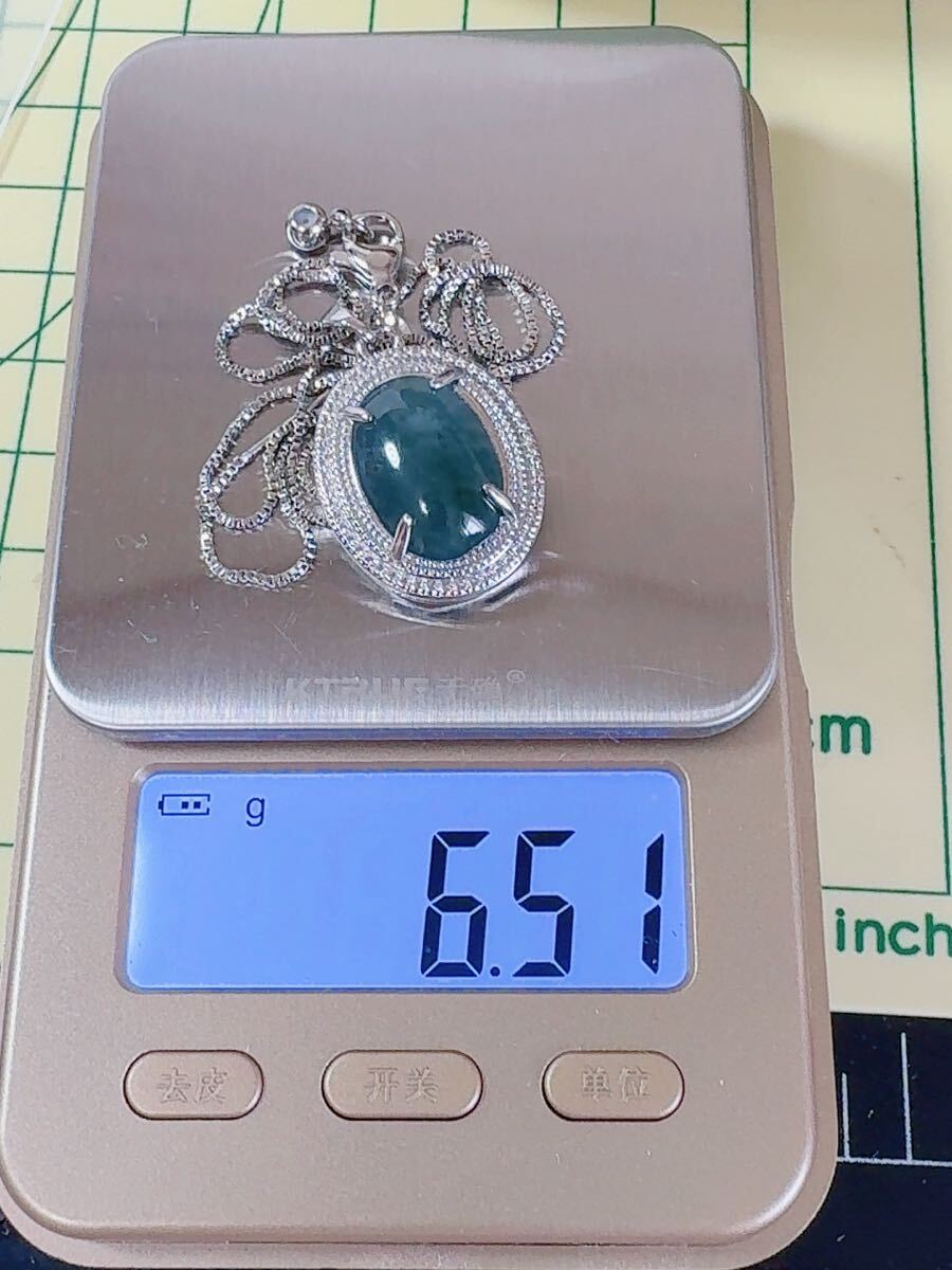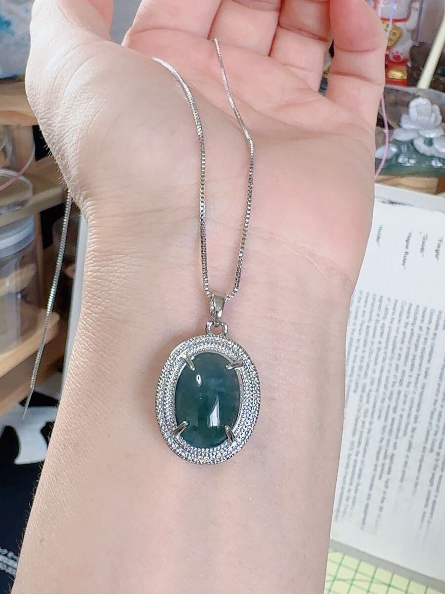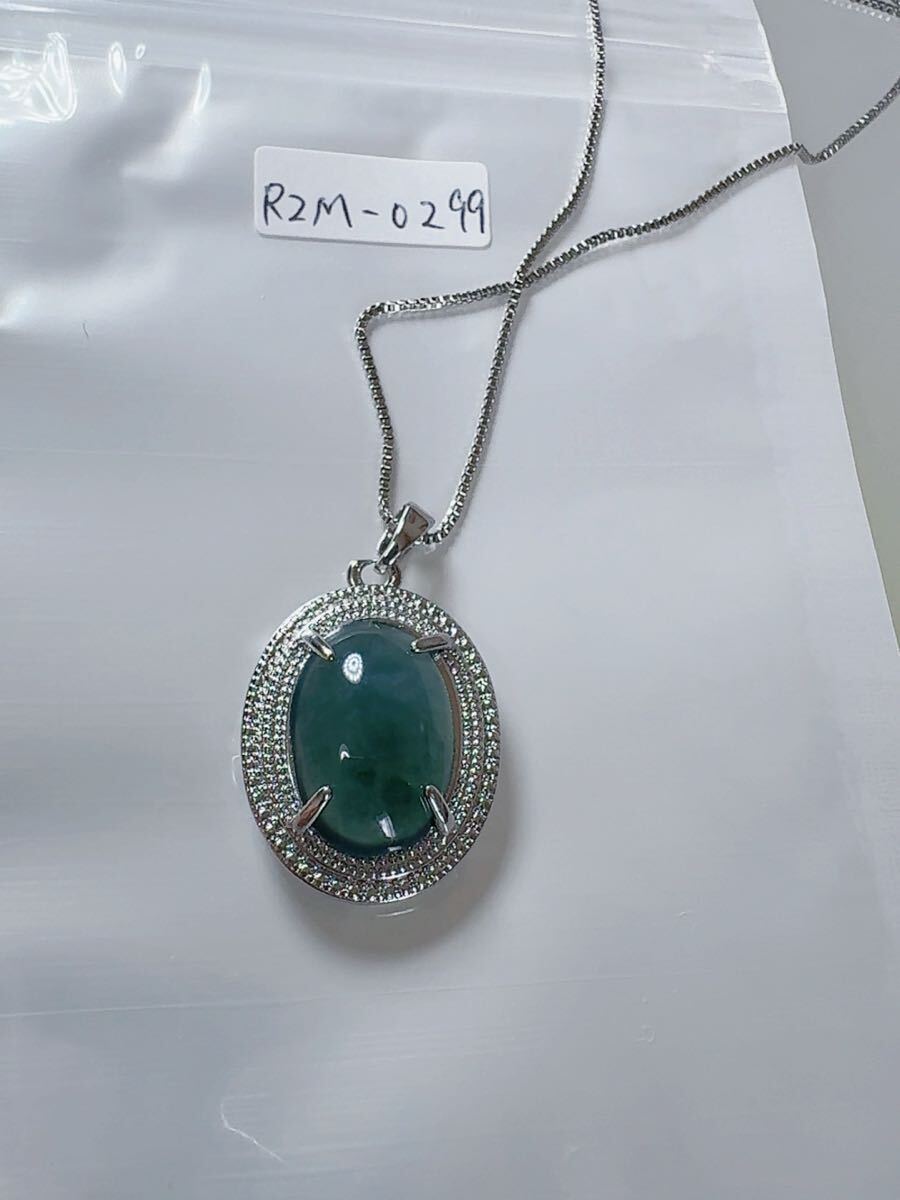 R2M-0299天然本翡翠 《本物保証》 藍水翡翠ペンダントチェーンSV925 一点物 魔除け 昇進 成功 風水 金運 財運 幸運 幸福 縁起物