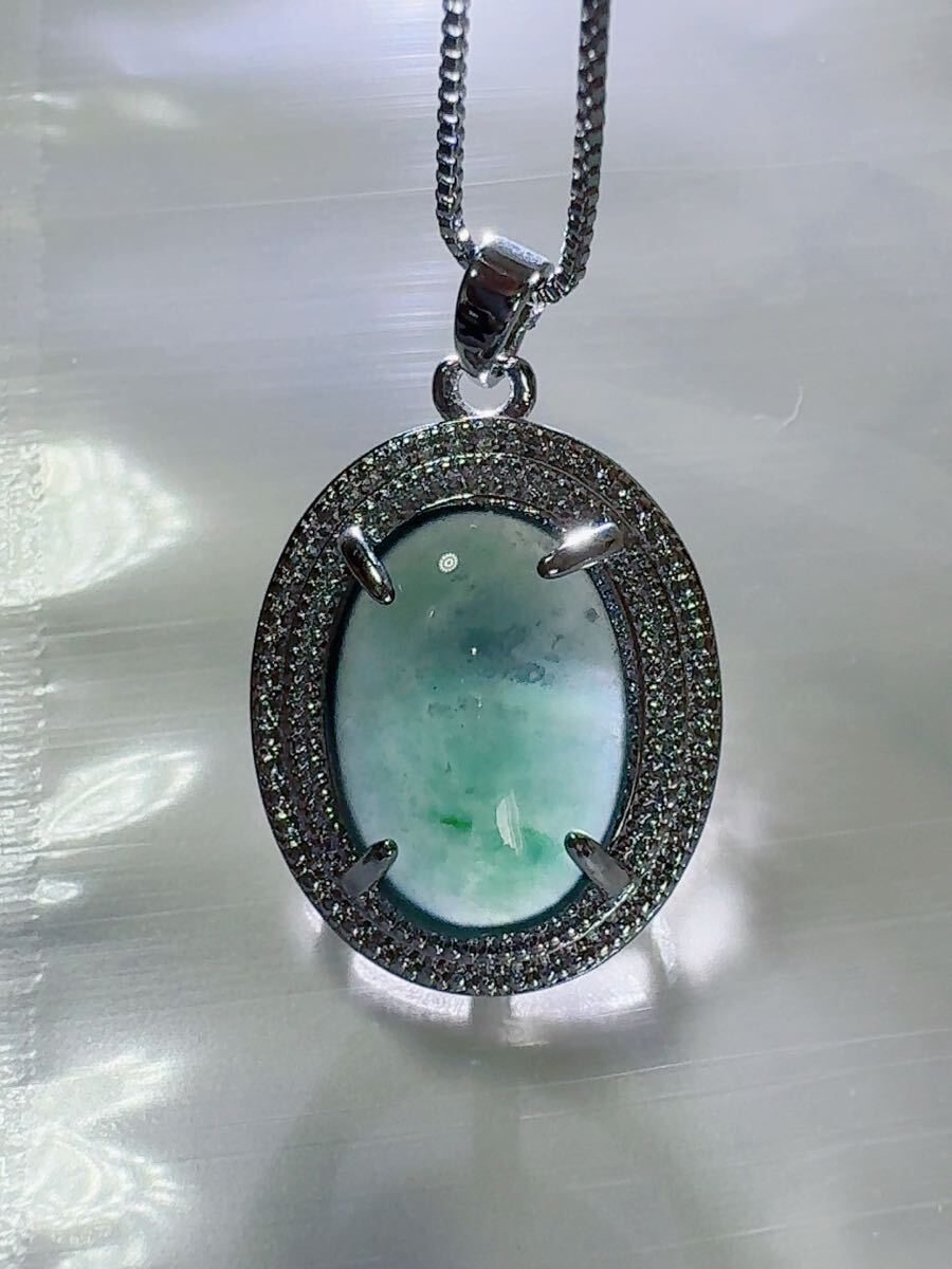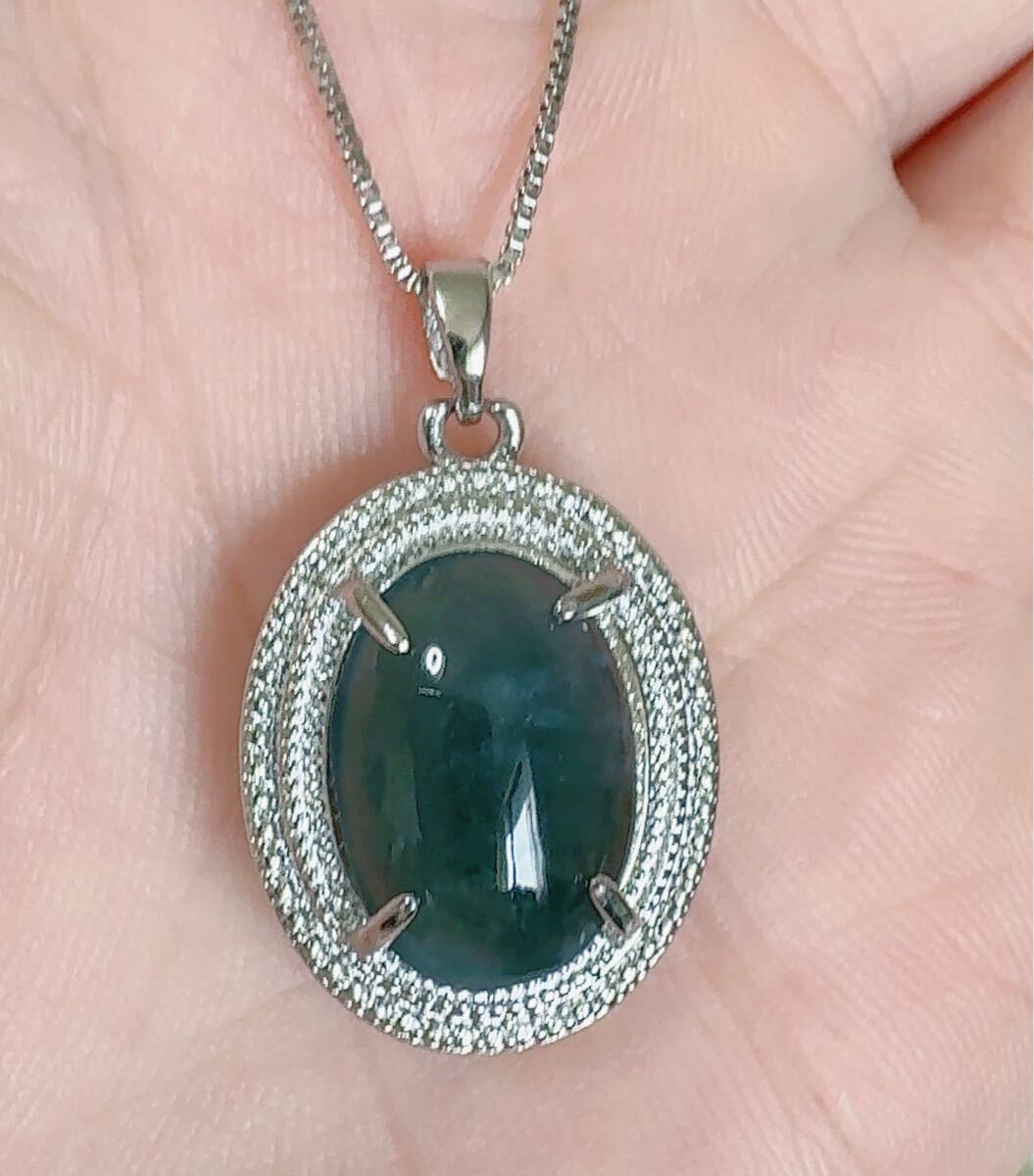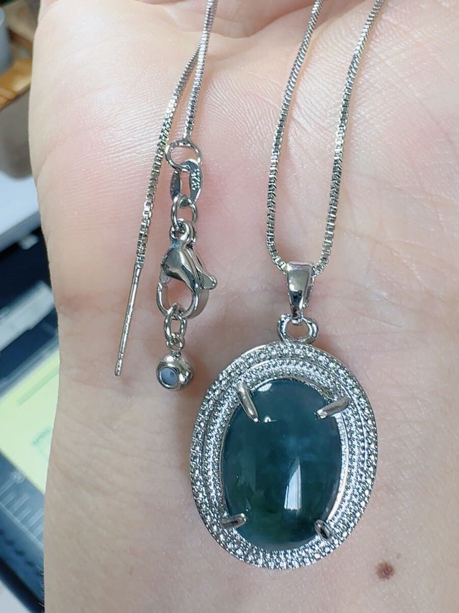 R2M-0299天然本翡翠 《本物保証》 藍水翡翠ペンダントチェーンSV925 一点物 魔除け 昇進 成功 風水 金運 財運 幸運 幸福 縁起物