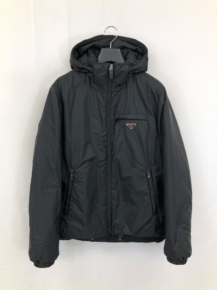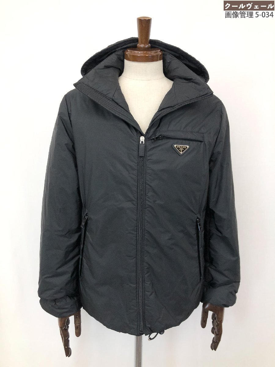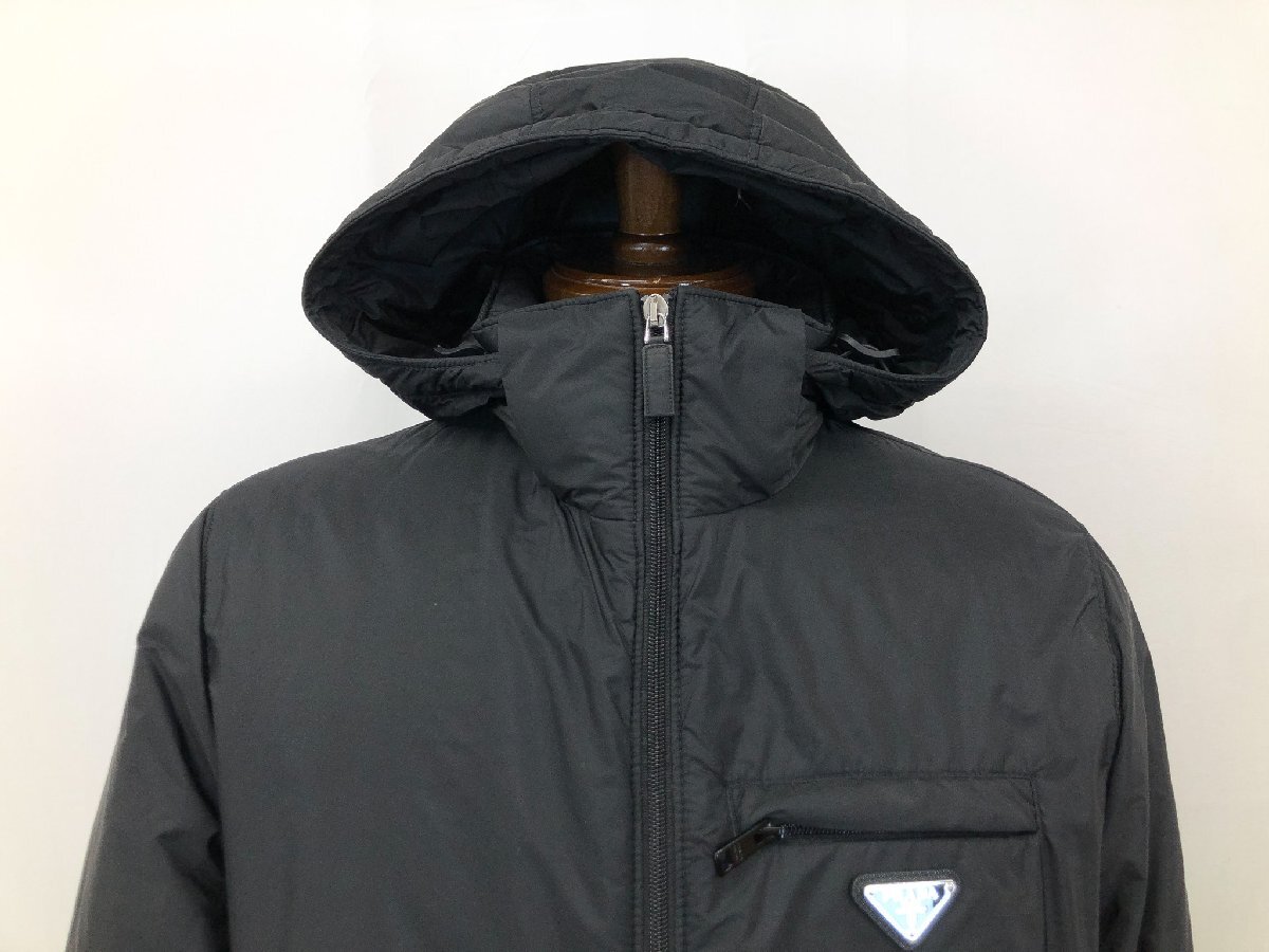 超美品【プラダ】Re-Nylon SGN955 S191 1WQ9 トライアングルロゴ フード付ダウンジャケット パファージャケット(メンズ)50 黒◇17MB4916◇