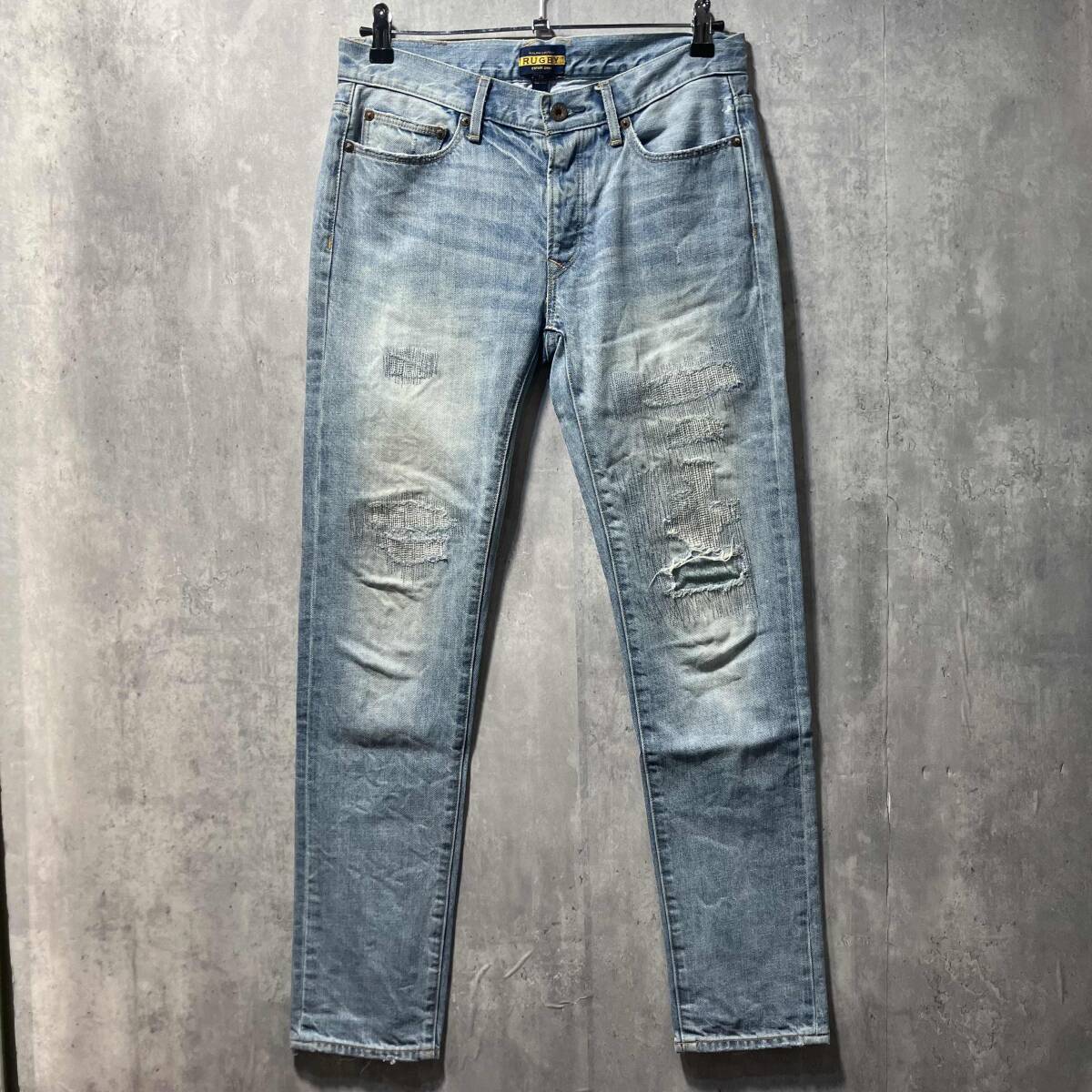 | 【サイズ】 表記サイズ:26 ウエスト 約80cm 股上 約22cm 股下 約75cm 裾幅 約16cm 【カラー】 ・ライトブルー系 【商品状態】 ・一般的な中古品の状態 |