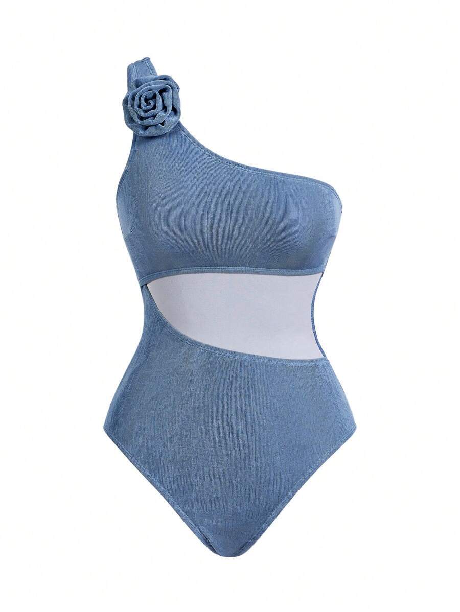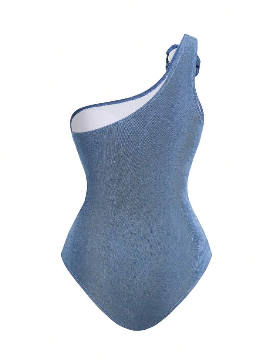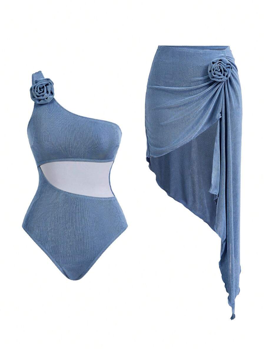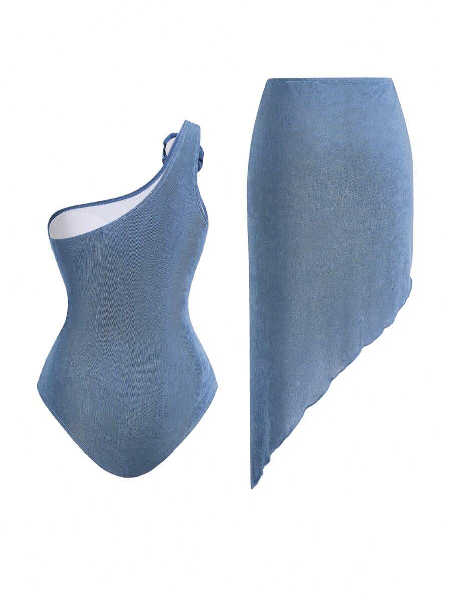 レディース 水着 ワンピース オアシス柄 アシンメトリー ワンショルダー ワンピース水着 2点セット