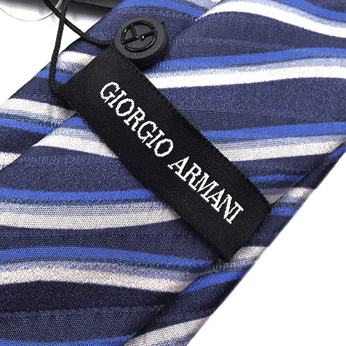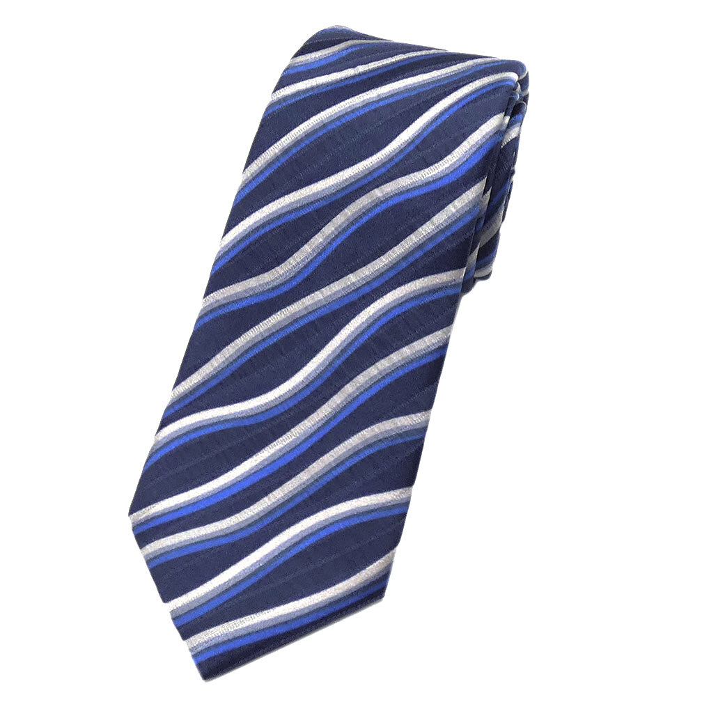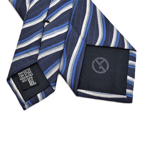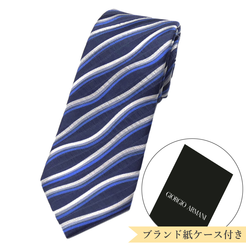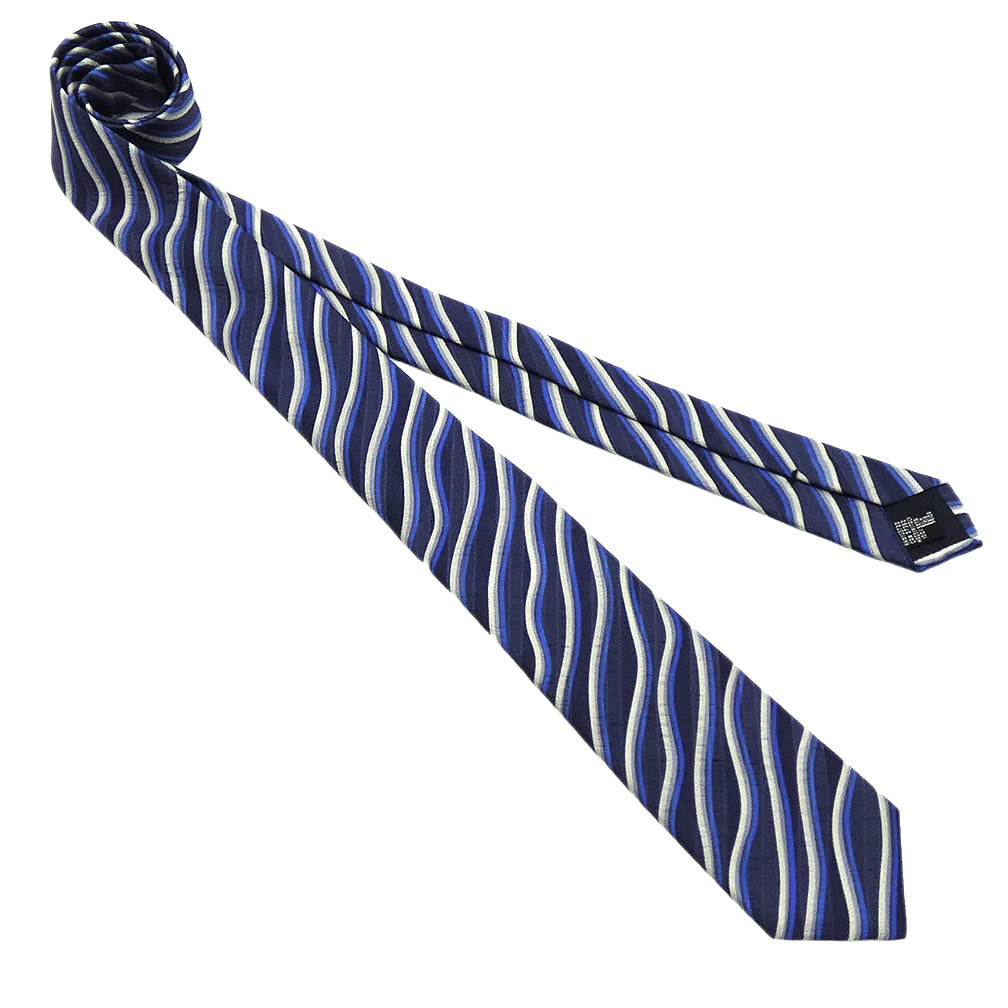 未使用 アルマーニ ブランド ネクタイ ジョルジオ アルマーニ 360287 高級 シルク 100% ストライプ 波 ウェーブ ネイビー 紺 51004
