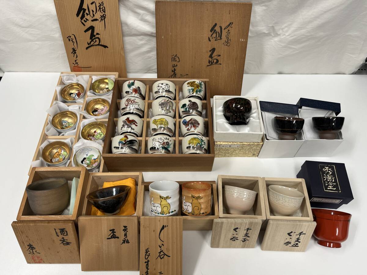 | 未使用まとめ 九谷焼 十二支 七福神 津軽塗 高橋道八 組盃 ぐい呑み 木箱 | ||