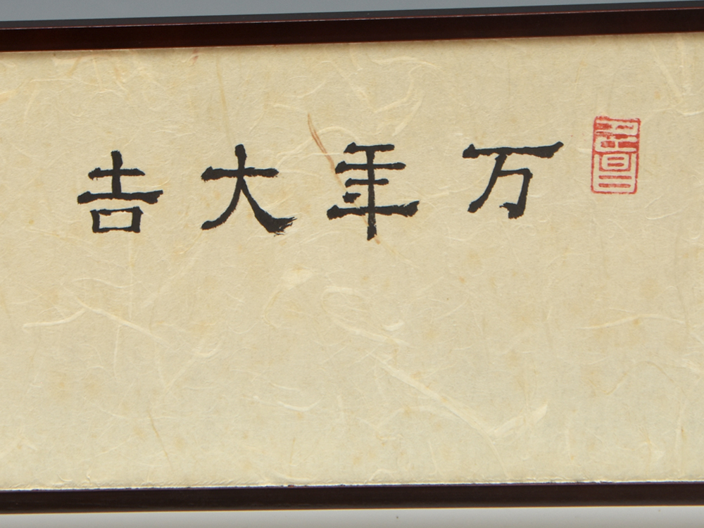 【真作】小谷光年 画「万年大吉」図入 結界です。 万年青の万年と霊芝で長寿を寿ぎ、大柚が大吉を表す画題です。 目立つ汚損破損なく状態は良好です。 ※撮影の際に生じた写り込みなどがございます。 ご理解の程よろしくお願い致します。 |