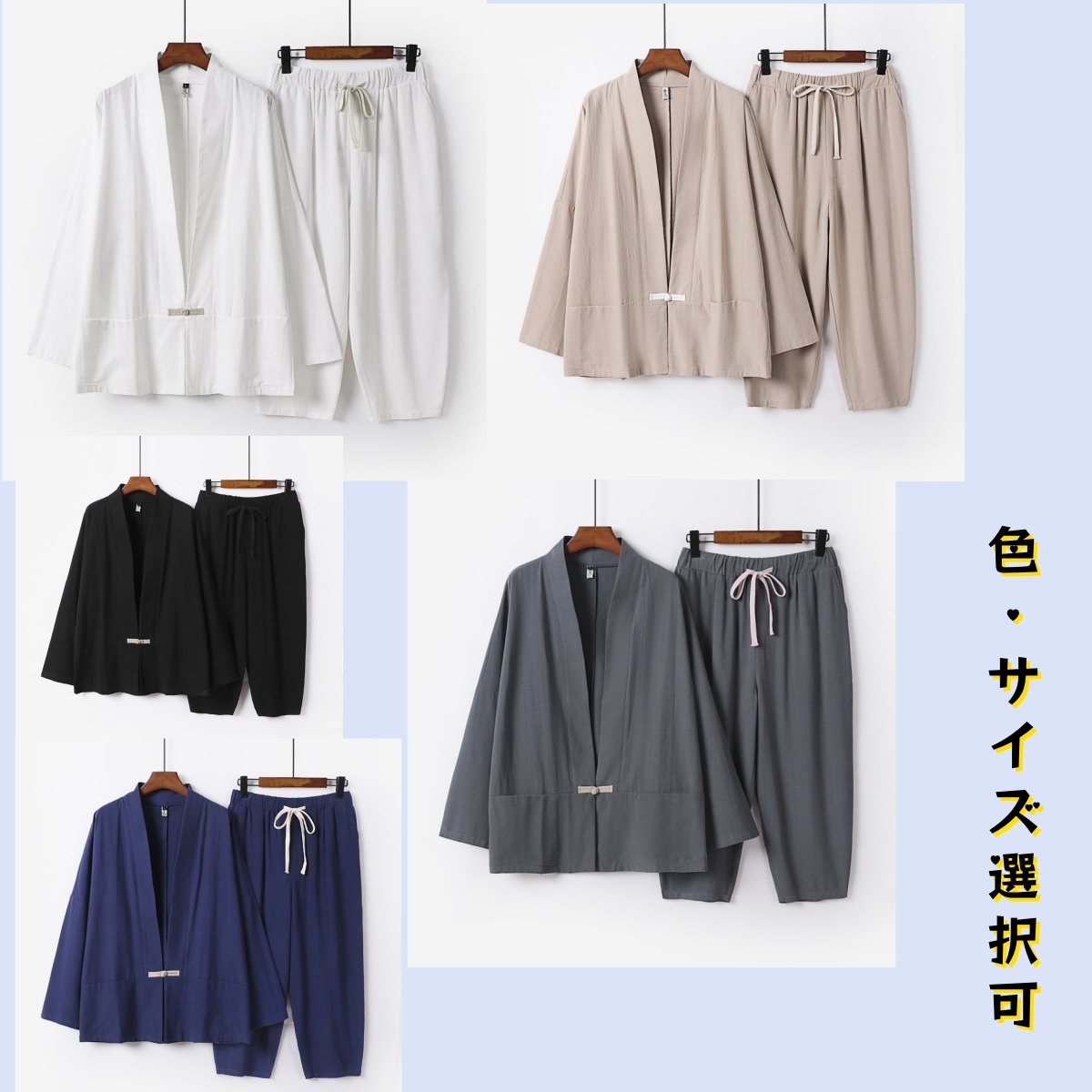 上下セット セットアップ 祭り パジャマ ルームウエア 部屋着 イベント 新品/メンズ 長袖シャツ ハーフパンツ ネイビー 3XL