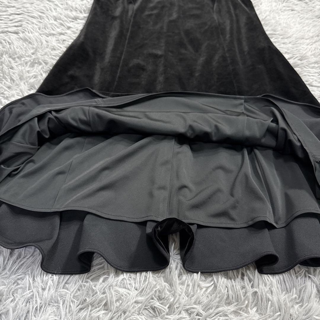 しっとりとした光沢感のあるベロア素材を使用し、裾のフリル切り替えが華やかさをプラス。