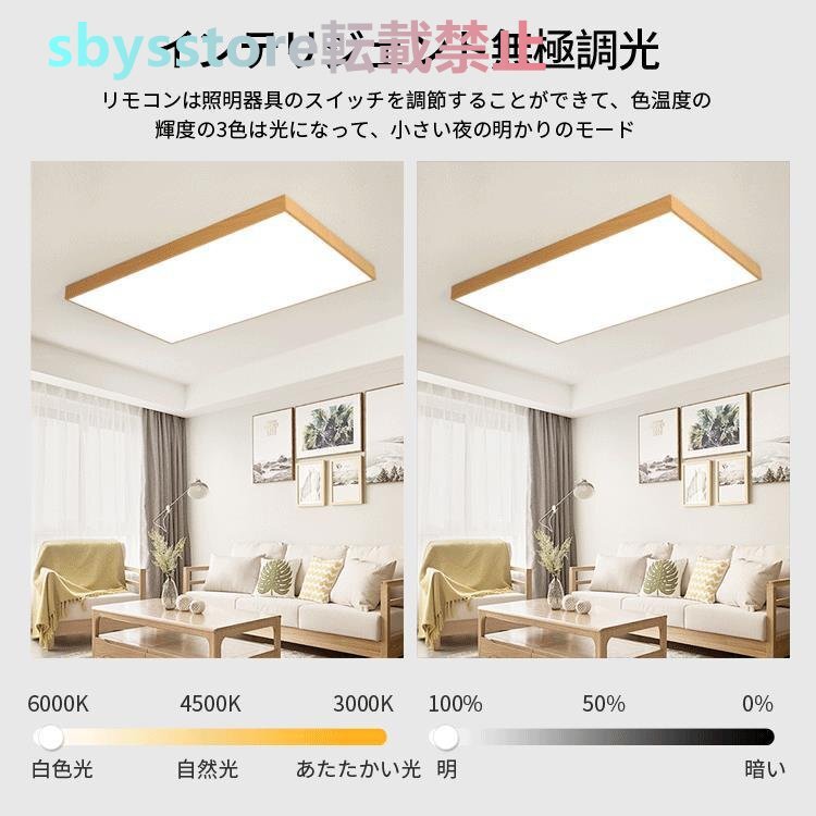 新型シーリングライト 超薄木目調長方形リビング照明 110V