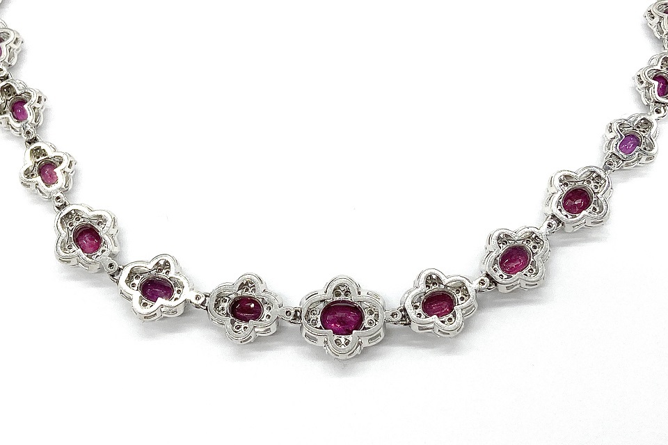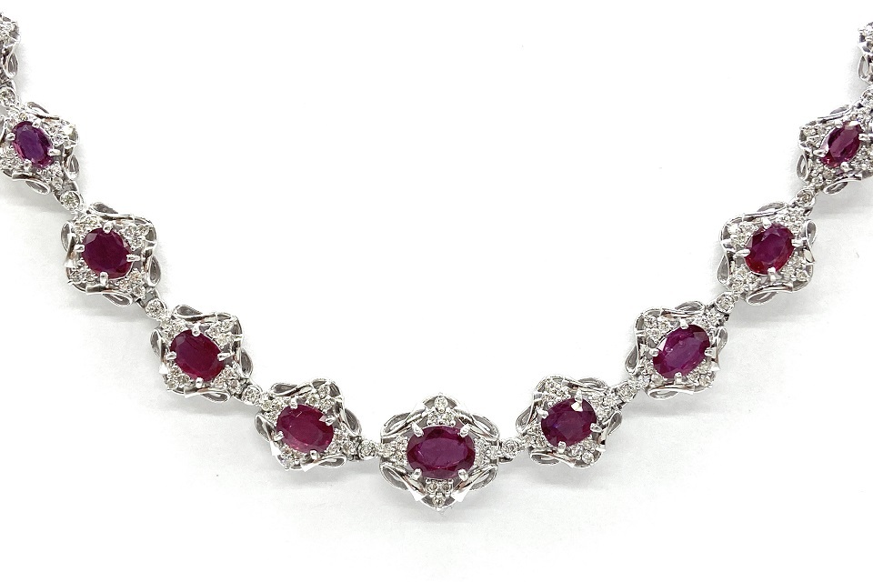 仕様 | R=12.94ct 主石サイズ7.8×6.1mm D=3.291ct 最大幅13.6mm 44.0cm 69.0g |