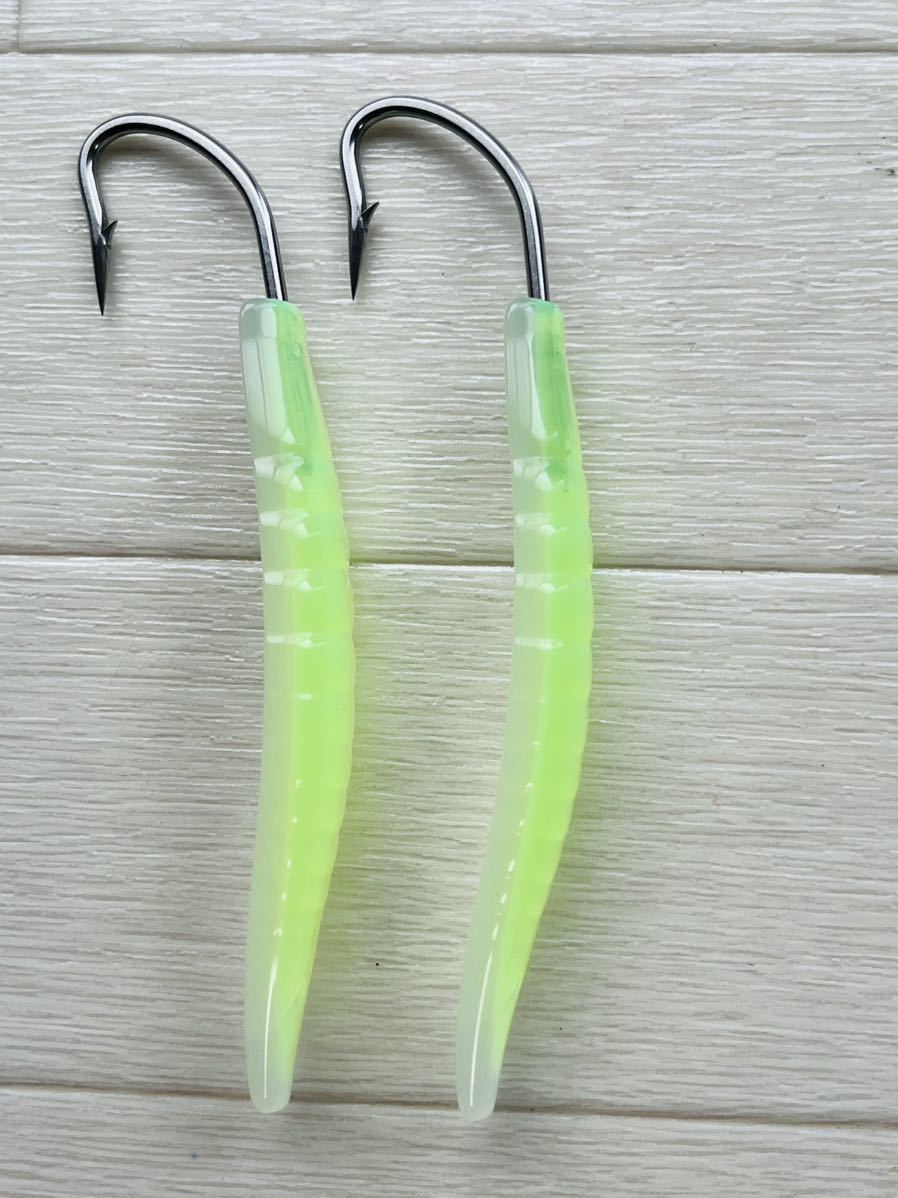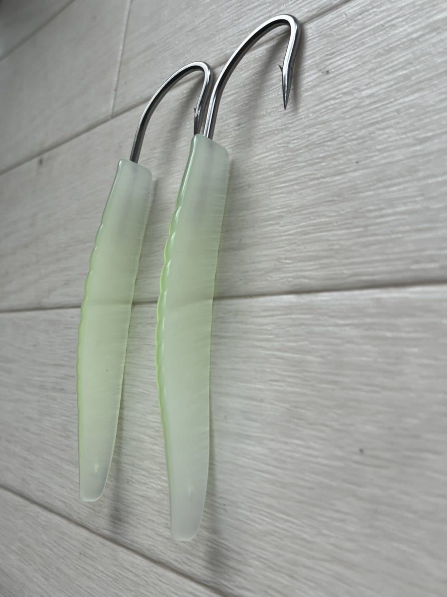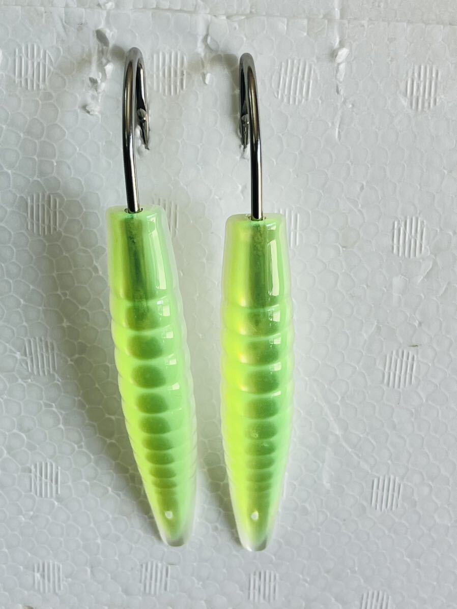 サワラ、ハマチなどのトローリング用 弓角ジャバラステンレス針黄緑9.5cm2本発送はお手軽ゆうパケットミニポスト投函になります。木曜日以外の発送になります。