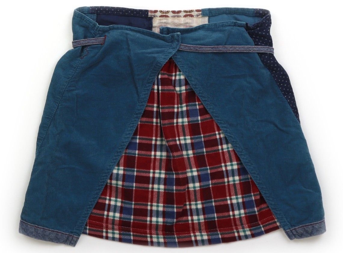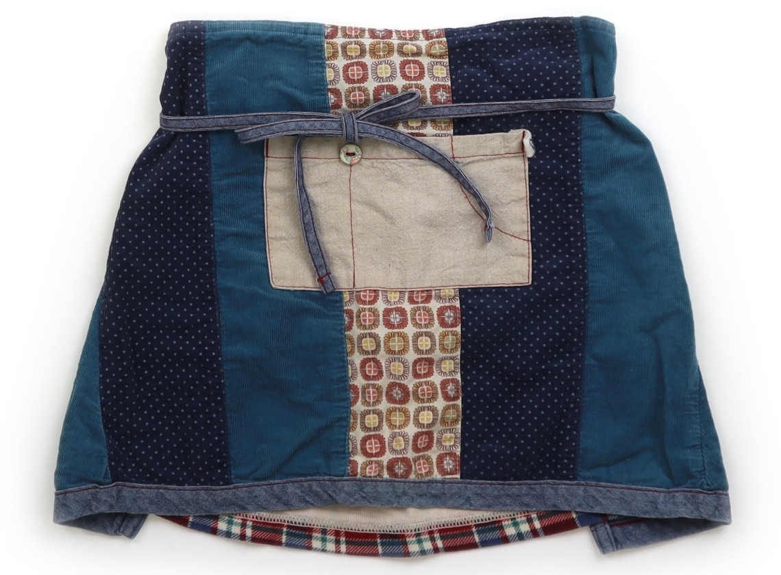 ラップスカート。パッチワークデザイン。パッチワーク部分はカットソーとコーデュロイ。全体的に使用感がありますが、特に目立つ汚れはなくまだお使い頂けそうです。