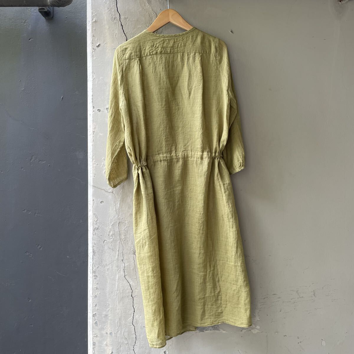 レイトリーの麻100%ワンピースが入荷しました。フロントはクロスしてボタンで留めてもいいですし、ボタン留めずに羽織りとしても使えます!ウエスト部分に入った紐は絞っても可愛いですよ。両サイドにポケット有り、美品です!この機会に是非ご検討くださいませ!!