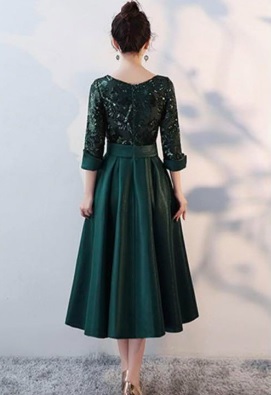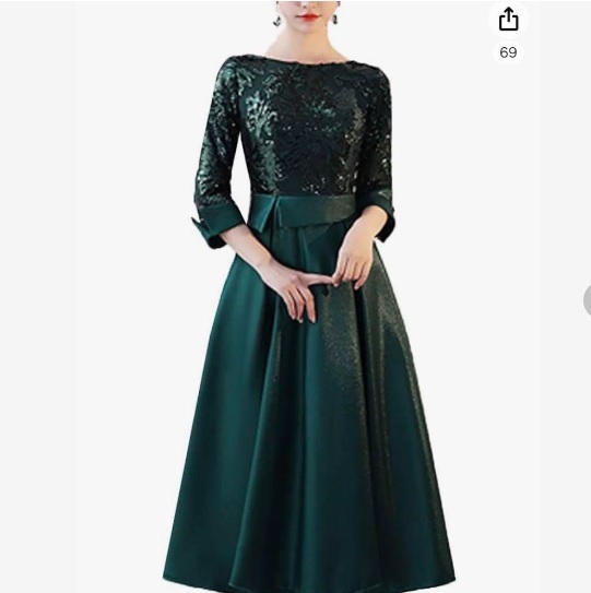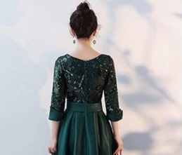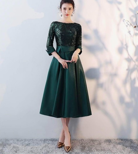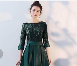 スパンコール仕立てのパ-ティ-ドレス。トップスから袖先にかけてチュール地にスパンコールをあしらった華やかな一着。ウエストをペプラム風に仕立て、サテンの生地をたっぷりと使用したスカート部分が豪華な印象に。パーティやイベント、結婚式など、様々なシーンで、気品のある印象を与えてくれる一枚です。裏地有。背中ファスナ-。胸パット付。 ■新品 ■サイズ 9号(M) バスト:約84cm ウエスト:約66cm 着丈:約108cm袖丈:約47cm肩幅:約33cm ■素材 POLYESTER ■色 グリ-ン ※ 写真撮影に使用した靴・アクセサリー等は含みません。 ※ トルソー使用の場合、 9号トルソーを使用しています。 ※ ご使用のPC環境により、写真と実際の色・風合いに若干の差異がみられる場合があります。 ※ 新品・未着用。 ※ 保管上、折ジワがある場合があります。