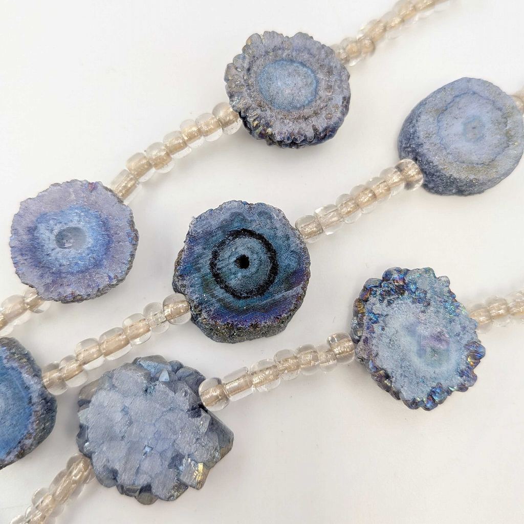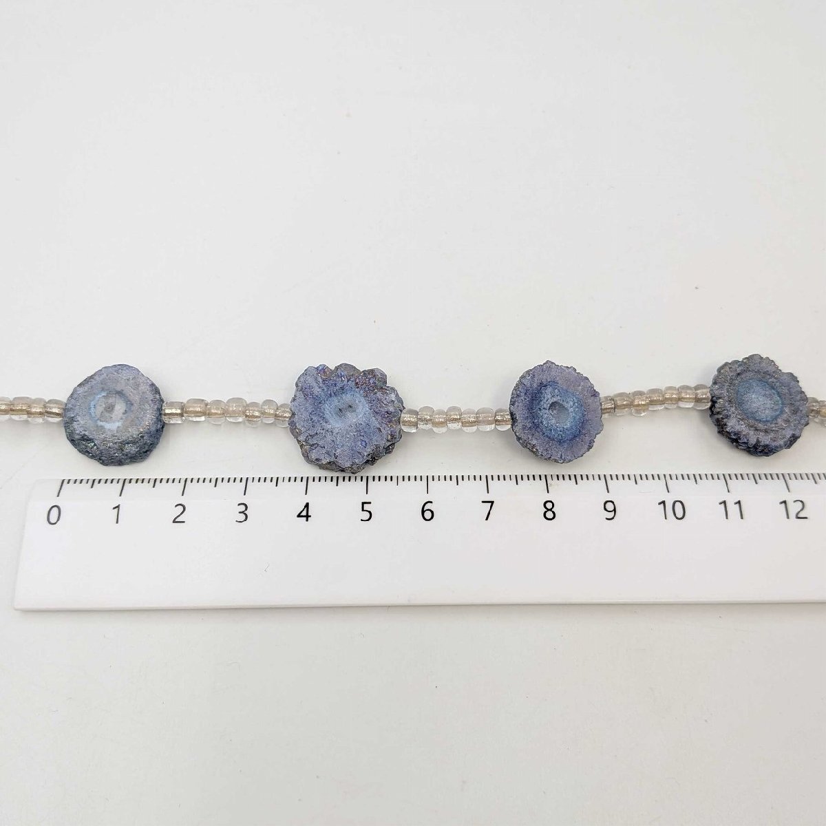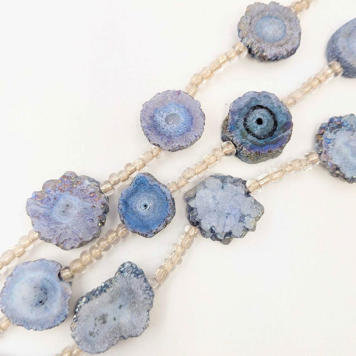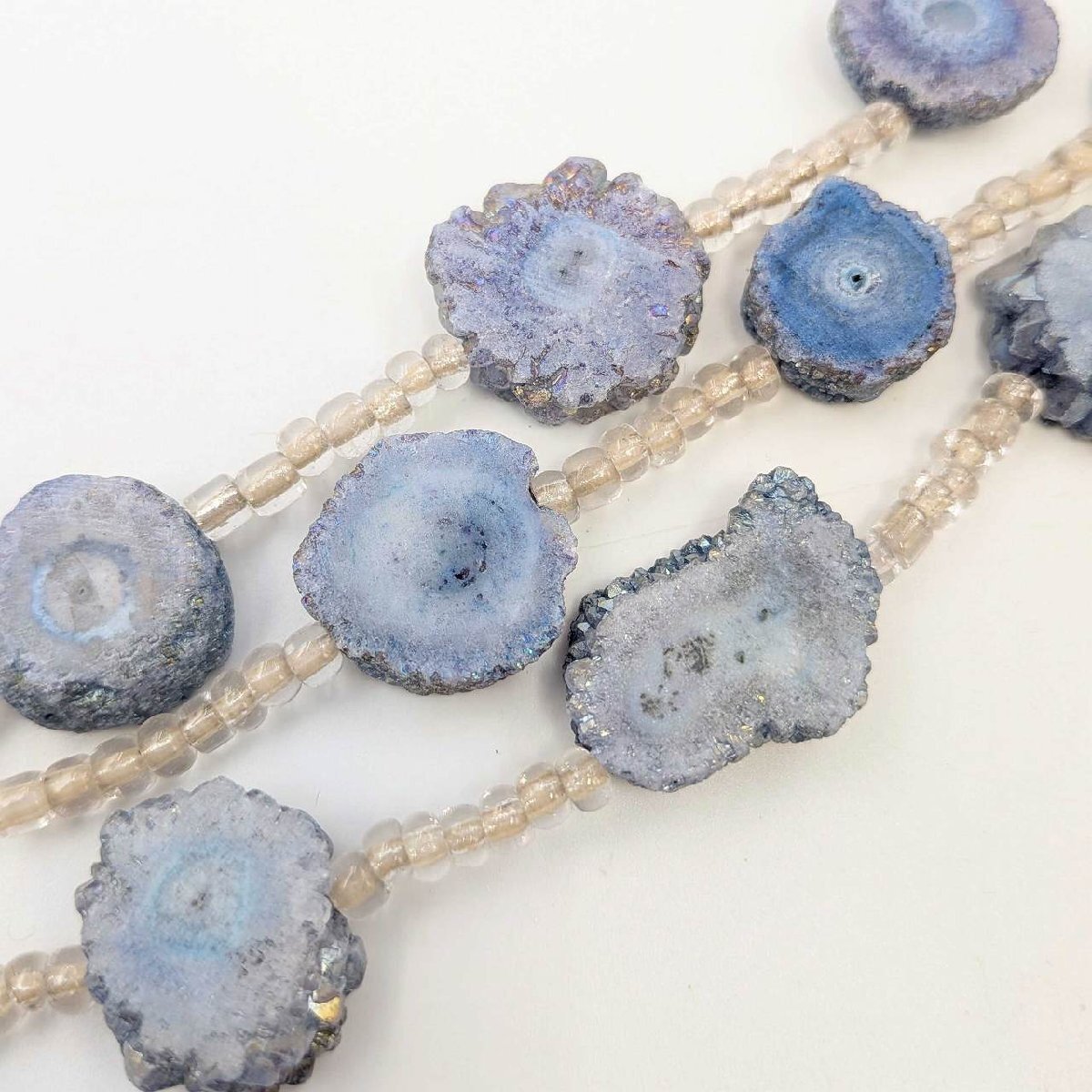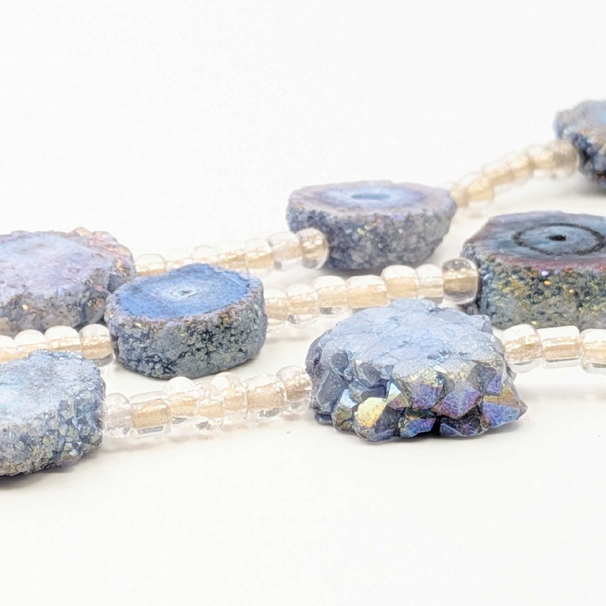 天然石ビーズ ドゥルージー スライスビーズ ブルー 不揃い形 約10~25mm 1連 約18cm 原石 パワーストーン ハンドメイド素材 ビーズクラブ
