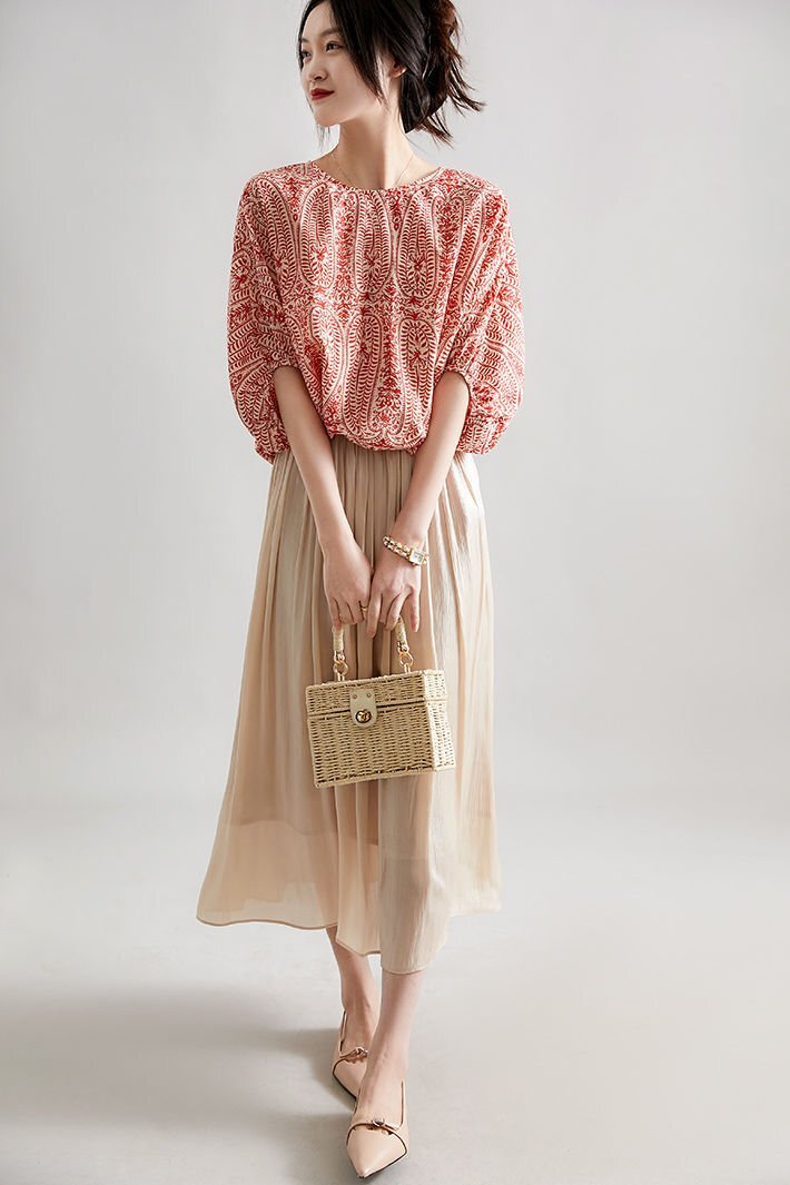 ・スカートやジーンズなど、色んなスタイルを楽しむことができ、コーデのアクセントにもなるトップスです。