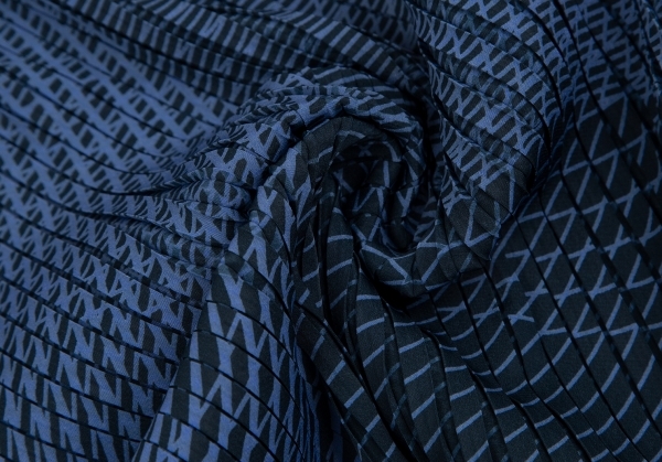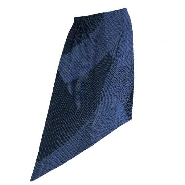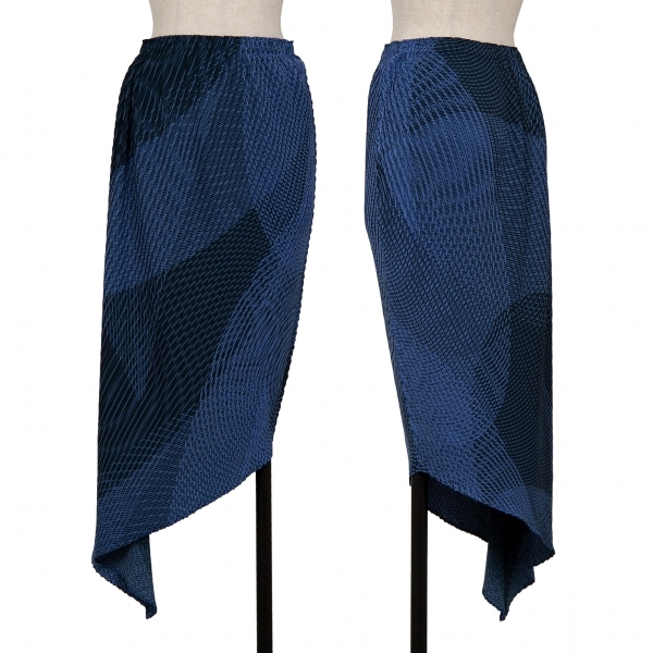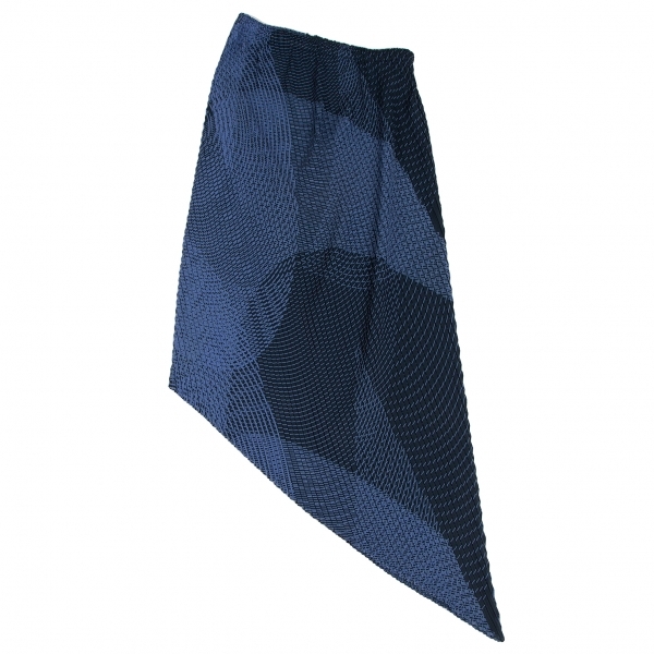 イッセイミヤケISSEY MIYAKE グラフィックプリントプリーツアシンメトリースカート 青2 |