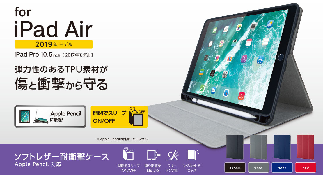 ELECOM iPad Air 第3世代 (2019年) / iPad Pro 10.5インチ (2017年) ソフトレザー耐衝撃ケース Apple Pencil対応 新品・未開封です。