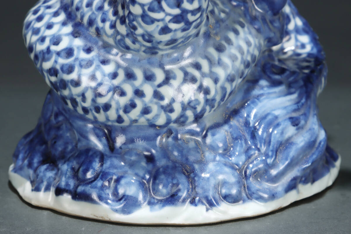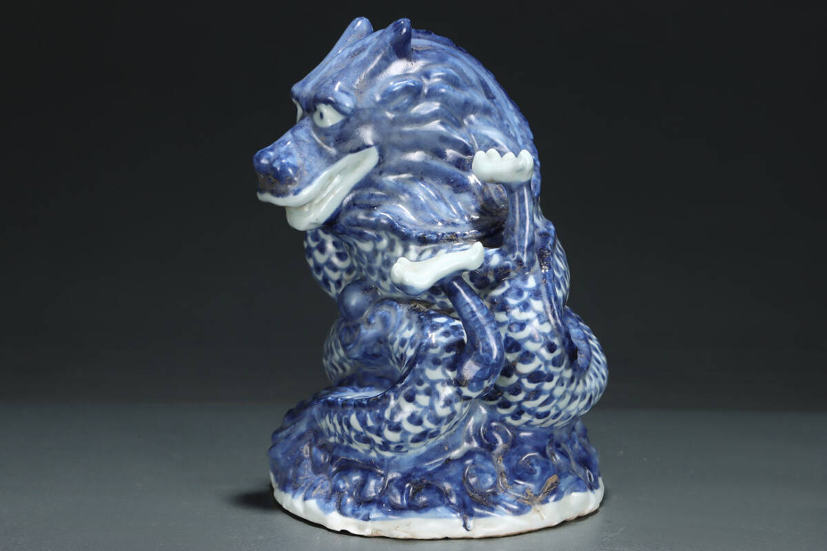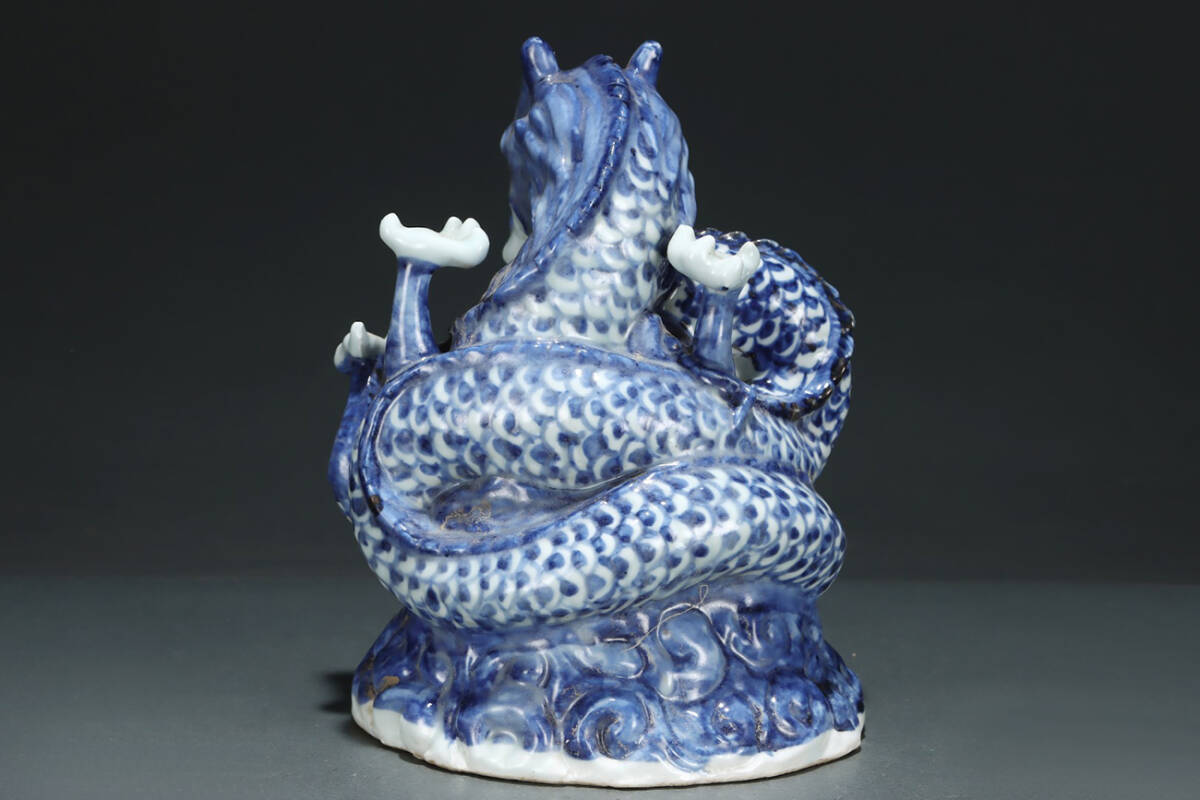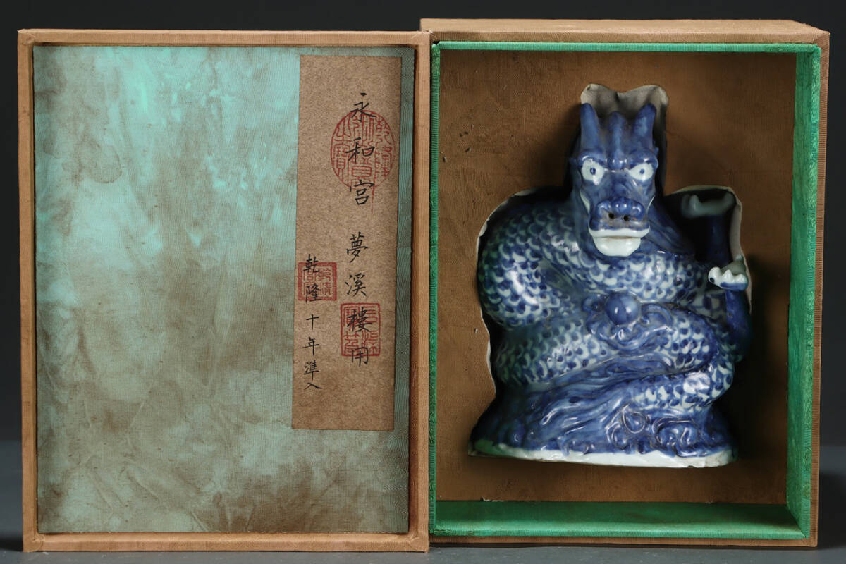 ▽鴻▽元時代 青花盤龍置物 共箱 唐瓷 古陶瓷 時代物 中国古美術 骨董品