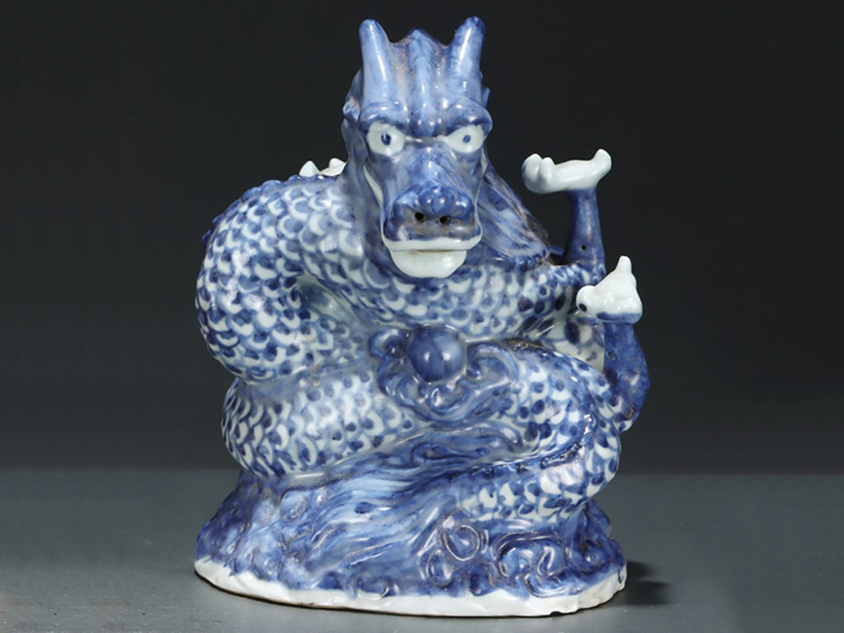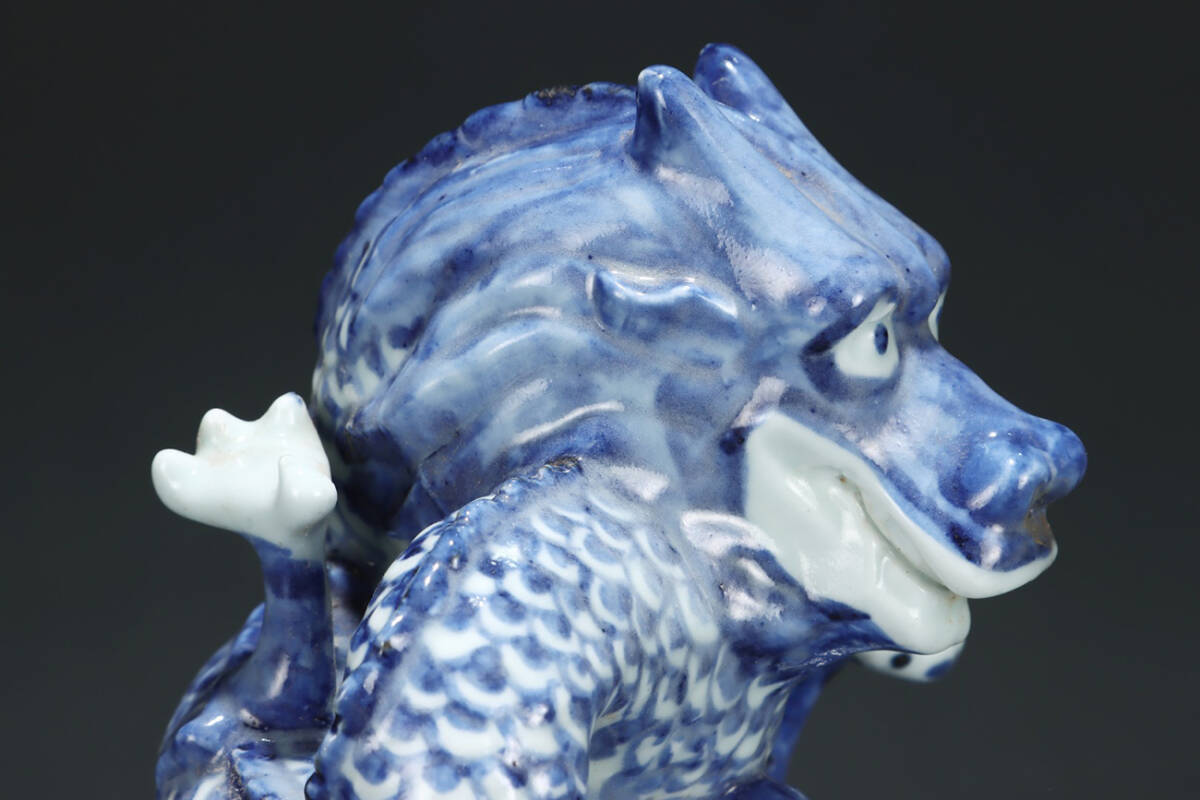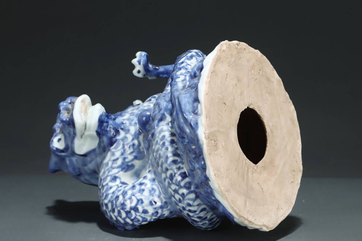 ▽鴻▽元時代 青花盤龍置物 共箱 唐瓷 古陶瓷 時代物 中国古美術 骨董品