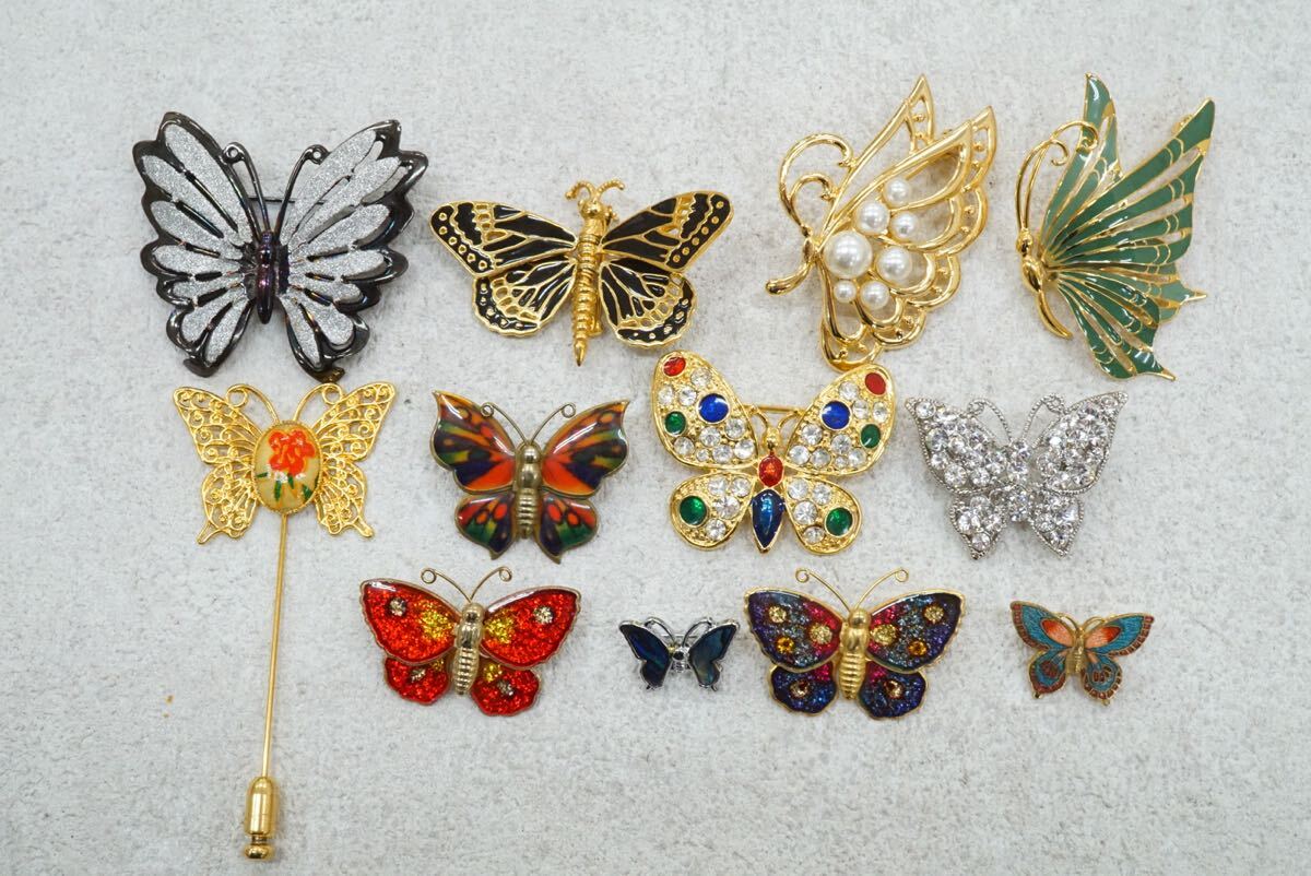 C1134 海外製含む バタフライ 蝶々 昆虫 ヴィンテージ ブローチ アクセサリー 大量 セット まとめて おまとめ まとめ売り
