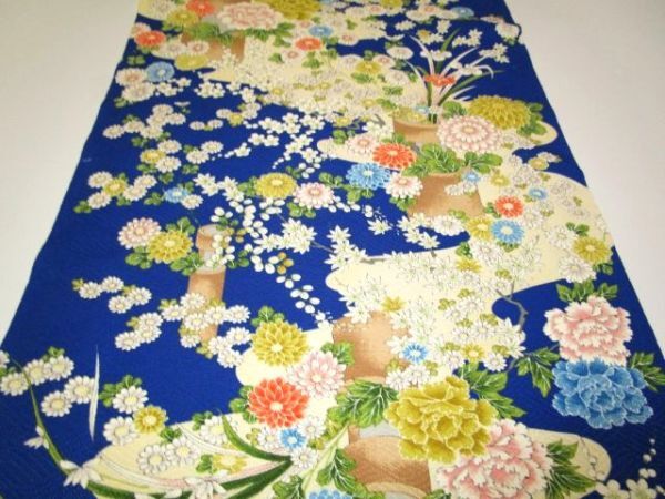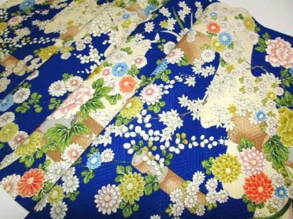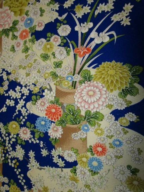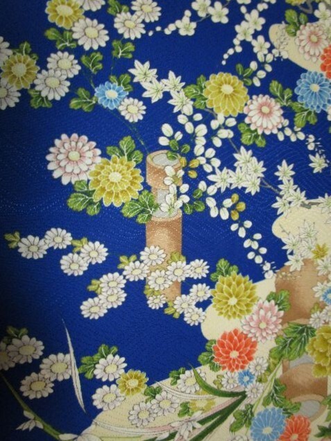 F-45★青地*菖蒲*牡丹*ダリア*梅*正絹*古布はぎれ★吊るし雛/市松人形/一閑張り/文化人形
