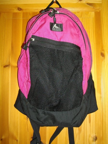 ★グレゴリーのバックパック、商品名”モアブ”、お色はブラックピンクです。