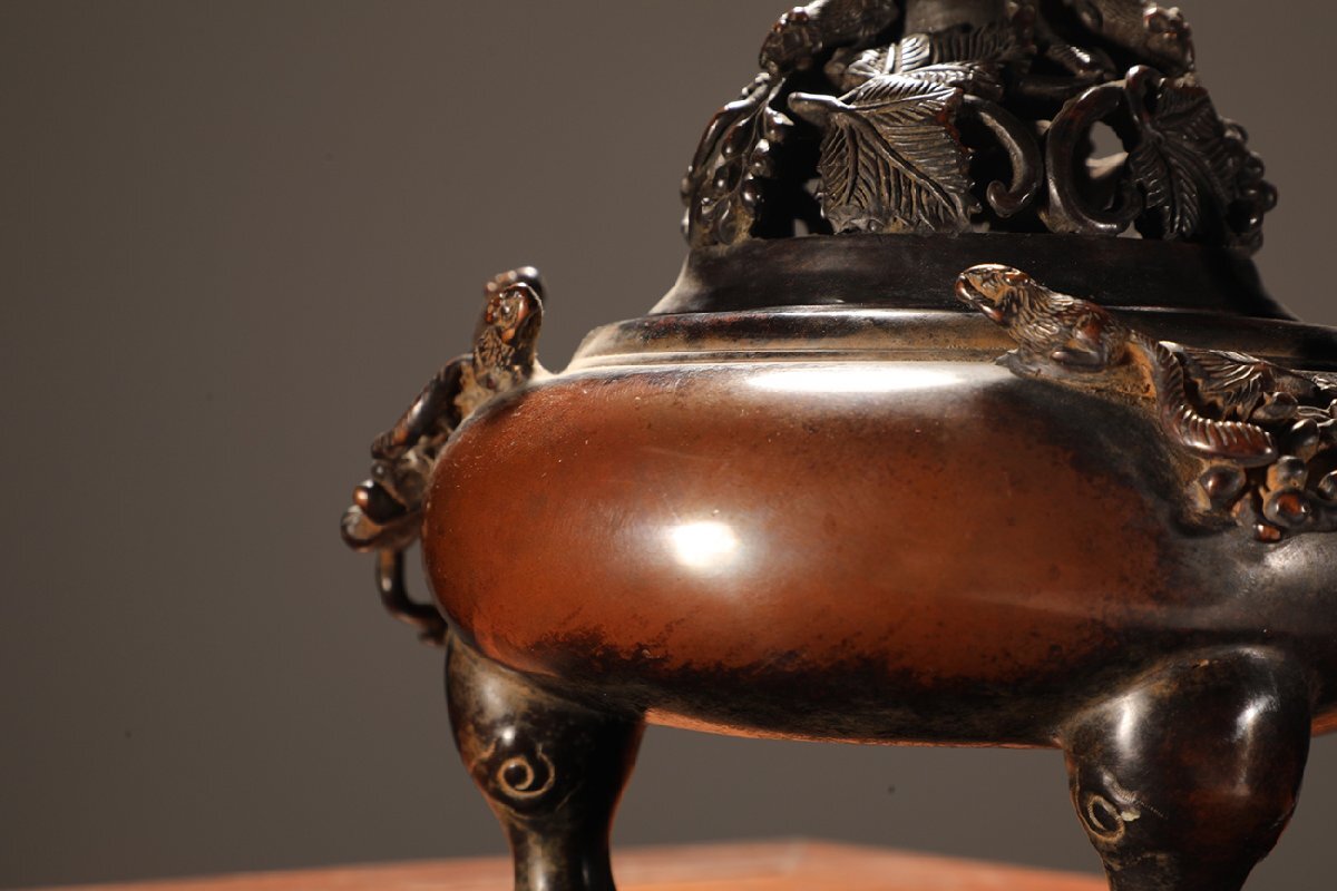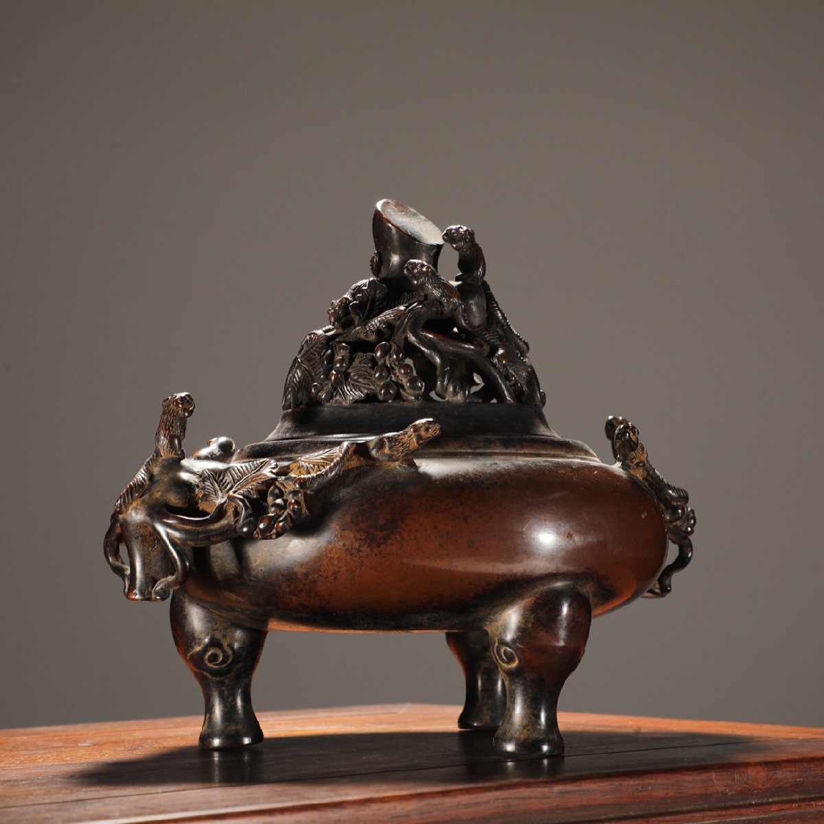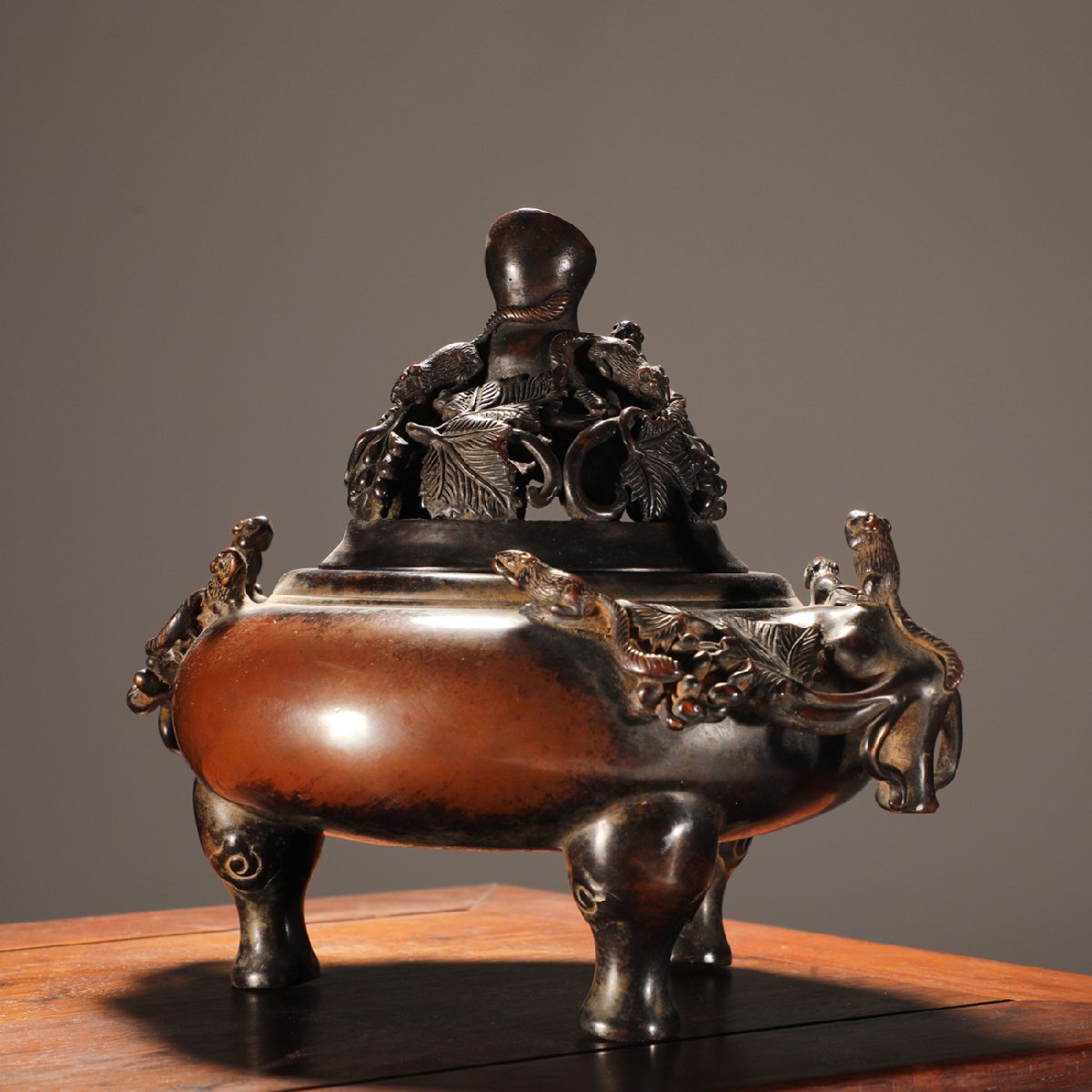 【安】明時代 大明宣徳年工部官臣呉邦佐造 銅胎 葡萄紋香薫炉 極細工 古置物 古擺件 中国古美術 時代物 古董品 272 サイズ(約寸) |
