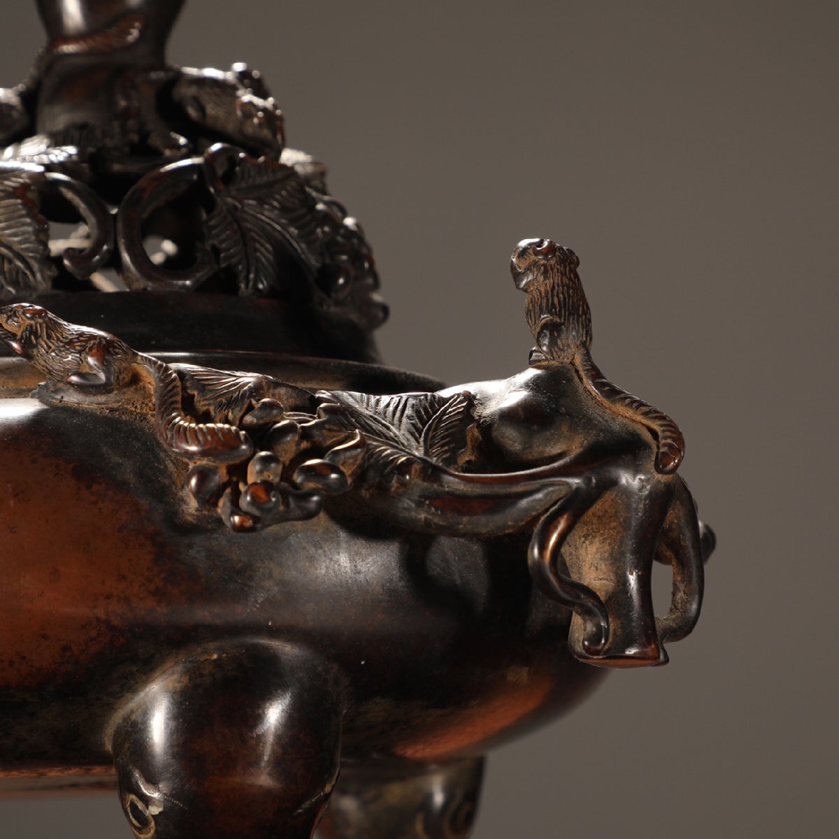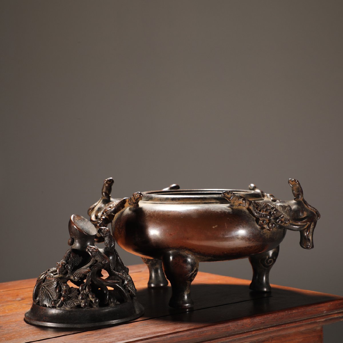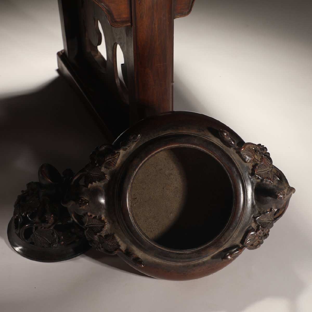 【安】明時代 大明宣徳年工部官臣呉邦佐造 銅胎 葡萄紋香薫炉 極細工 古置物 古擺件 中国古美術 時代物 古董品 272 サイズ(約寸) |
