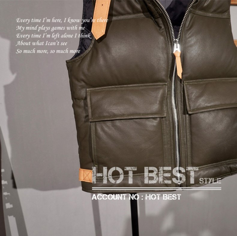 見た目の美しさと実用性を兼ね備えたこのレザーダウンベストは、寒さに妥協せずスタイルを楽しみたいすべての方におすすめです。