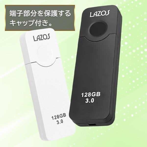 たっぷり保存!大容量128GBのUSBメモリ。 端子部分を保護できるキャップ付き。 | |