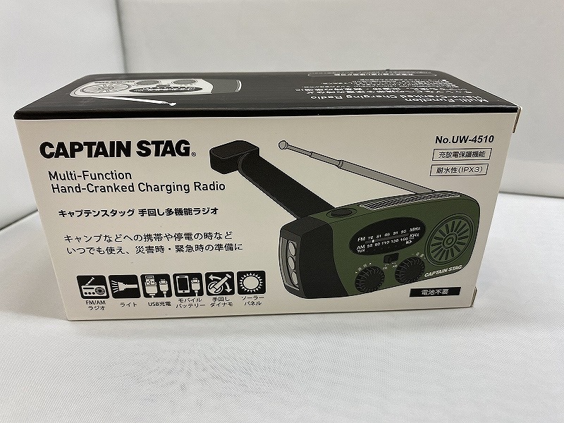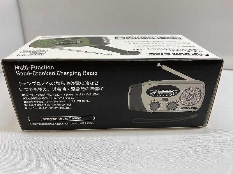 【未使用】 キャプテンスタッグ CAPTAIN STAG ライト付き 手回し多機能ラジオ ソーラー キャンプ 災害 停電対策 カーキ UW-4510
