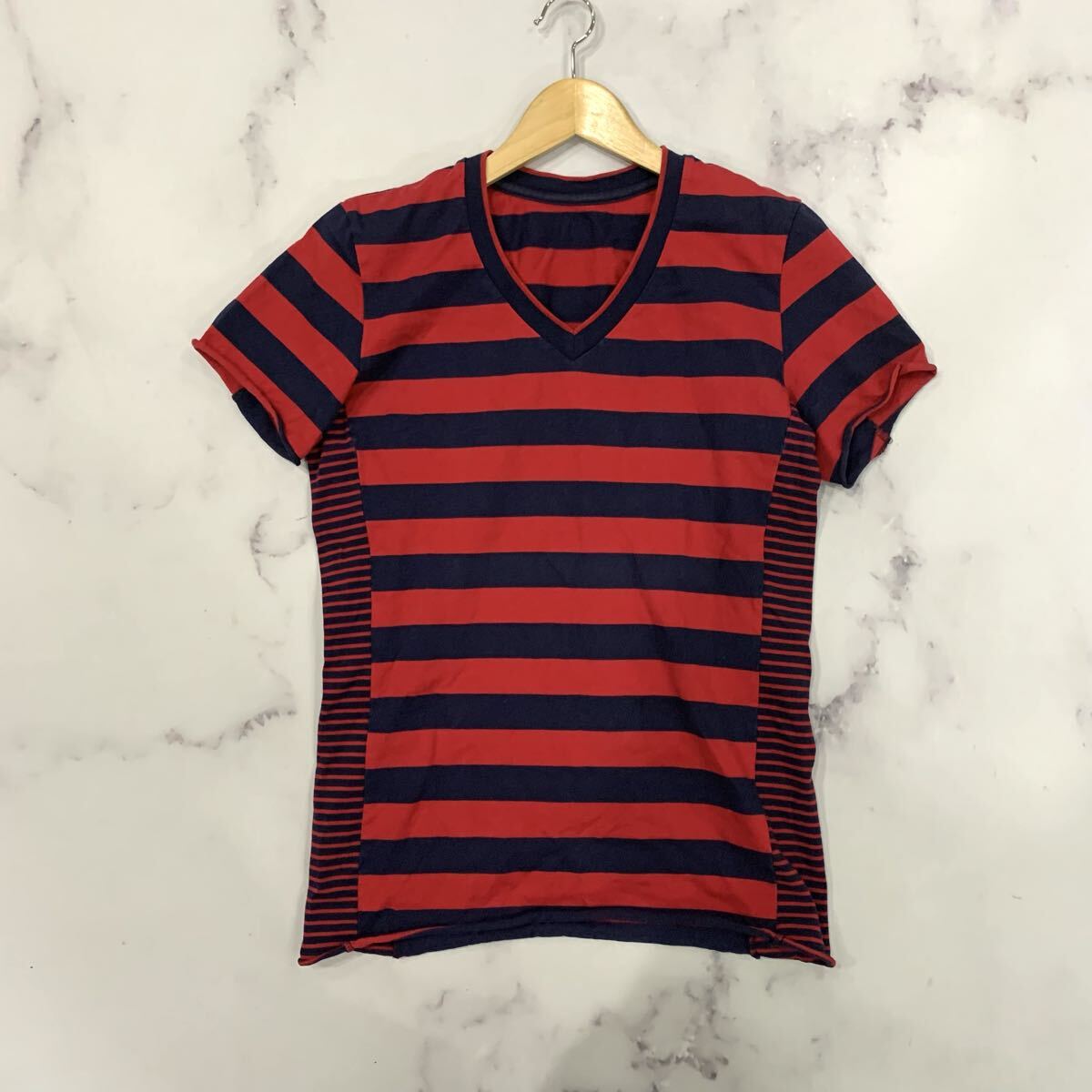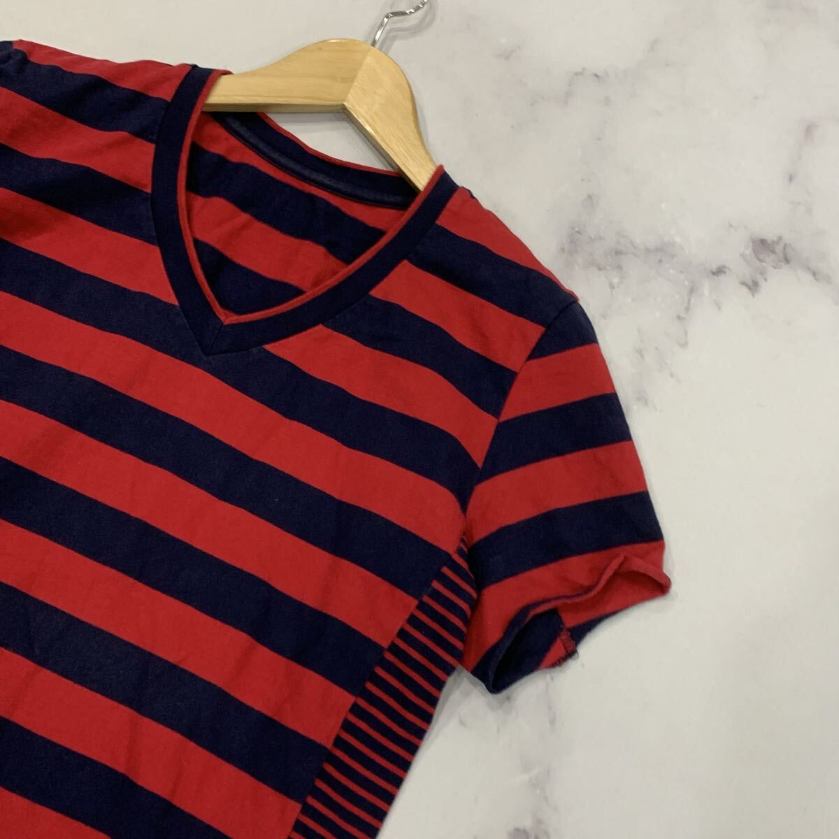 CC ▼ 洗練されたデザイン!! '日本製' 1PIU1UGUALE3 ウノピゥウノウグァーレトレ 半袖 ボーダー柄 Vネック Tシャツ IV (M) メンズ トップス