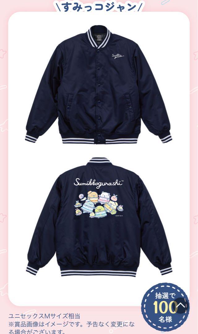 すみっコぐらし スカじゃん size : M NAVY 表 地 : ナイロン 100% 裏 地 : ポリエステル 100% 中 綿 : ポリエステル 100% リブ部 : ポリエステル 97% ポリウレタン 3%
