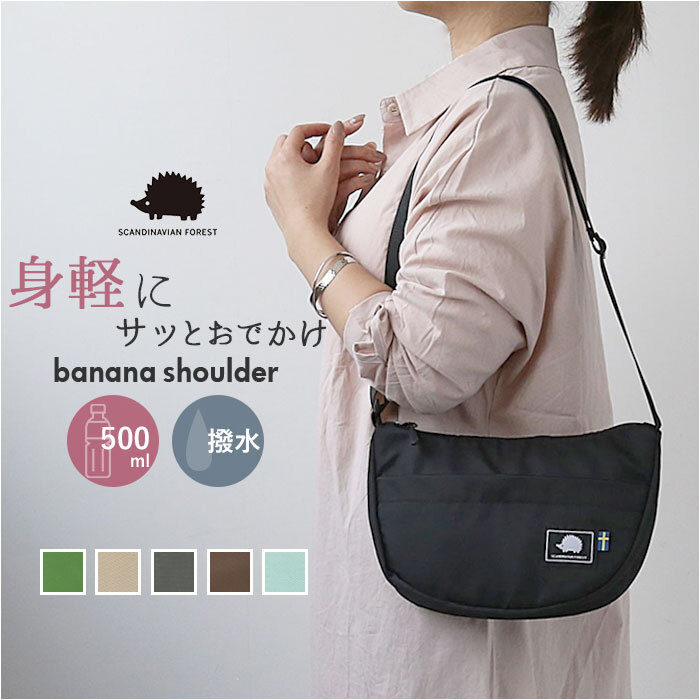 商品説明 | ・・ハリネズミのモチーフが可愛らしいワンポイント♪大人気「SCANDINAVIAN FOREST」から、ミニバナナショルダーバッグが新登場。 ・丸みのあるバナナ型のシルエットが身体のラインに自然に寄り添う、シンプルなミニショルダー。 ・バッグの開口部は小物がこぼれ落ちる心配の少ない天ファスナー仕様なので、外出先でのプライバシー面でも安心なつくり。 ・メインルームには長財布やA5サイズの手帳がすっぽりと収まり、お出掛けに必要な小物がミニマムに収納できるサイズ感。 ・スリムな見た目ながら、内側にファスナーポケット×1ヶ所をしっかりと配置し、コスメやコインケースなど小物類の仕分けもすっきりと。 ・バッグ前面のマグネット式ポケットからは、スマホやパスケースがスムーズに取り出せて便利! ・ショルダーベルトは自分サイズに調節可能。忙しい朝はサッと肩に掛けたり、斜め掛けスタイルもお好みで♪ ・バッグの生地内側にクッション材を内蔵しているため、型崩れしにくく装着時の身体当たりがソフトなのも使いやすさのポイント。 ・光沢感のある表生地は、汚れや水滴を玉のように弾くはっ水ナイロン仕様。ベーシックカラーからくすみ感のあるアースカラーまで、ファッションに合わせやすいカラーラインナップ。 ・カフェでホッと一息つきたいときや、ワンちゃんのお散歩などちょっとそこまでのお出掛けにぴったりの使いやすさ。 ・・「SCANDINAVIAN FOREST」(スカンジナビアン・フォレスト)は、大人気「MOZ」の姉妹ブランドとしても有名な、スウェーデン発の北欧雑貨ブランド。 |