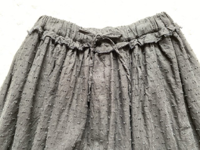 リボン風のぽこぽこドビードットが可愛いスカートです。
